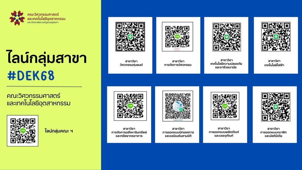 นักเรียนที่ส่ง Portfolio รับตรงครั้งที่ 2 ของคณะวิศวกรรมศาสตร์และเทคโนโลยีอุตสาหกรรม สามารถเข้ากลุ่มไลน์คณะและไลน์สาขาของตนเองเพื่อใช้ในการแจ้งข้อมูลต่าง ๆ ในการสัมภาษณ์วันที่ 25 ตุลาคมนี้