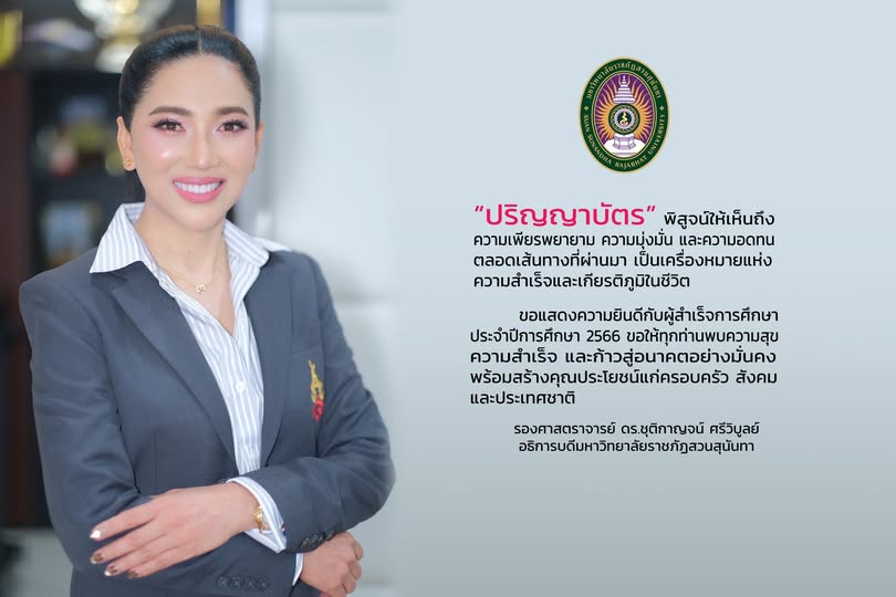 ขอแสดงความยินดี กับผู้สำเร็จการศึกษา ประจำปีการศึกษา 2566 ขอให้ทุกท่านประสบความสุข ความสำเร็จ และก้าวสู่อนาคตอย่างมั่นคง พร้อมสร้างคุณประโยชน์แก่ครอบครัว สังคม และประเทศชาติ
