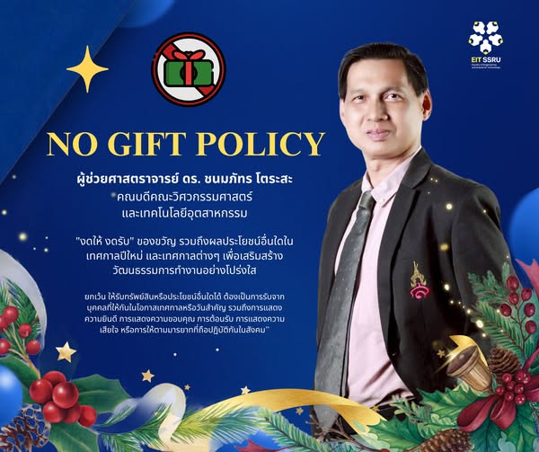คณะวิศวกรรมศาสตร์และเทคโนโลยีอุตสาหกรรม "งดให้ งดรับ" ของขวัญ รวมถึงผลประโยชน์อื่นใดในเทศกาลปีใหม่ และเทศกาลต่างๆ เพื่อเสริมสร้างวัฒนธรรมการทำงานอย่างโปร่งใส ยกเว้น ให้รับทรัพย์สินหรือประโยชน์อื่นใดได้ ต้องเป็นการรับจากบุคคลที่ให้กันในโอกาสเทศกาลหรือวันสำคัญ รวมถึงการแสดงความยินดี การแสดงความขอบคุณ การต้อนรับ การแสดงความเสียใจ หรือการให้ตามมารยาทที่ถือปฏิบัติกันในสังคม”