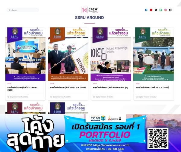 "วารสารแก้วเจ้าจอมออนไลน์" อัปเดตทุกเรื่องเด่นรอบรั้วสวนสุนันทา : https://kcc.ssru.ac.th/ssru-around