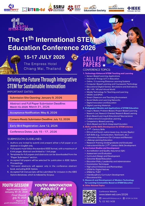 เปิดรับบทความเพิ่มเติม! ขอเชิญคณาจารย์ นักวิจัย นักศึกษา และผู้สนใจ ส่งบทความวิจัย/บทความวิชาการเพื่อนำเสนอในงานประชุมวิชาการนานาชาติ iSTEM-Ed 2026
