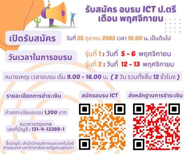 สมัครอบรมได้ที่ : www.ict.ssru.ac.th