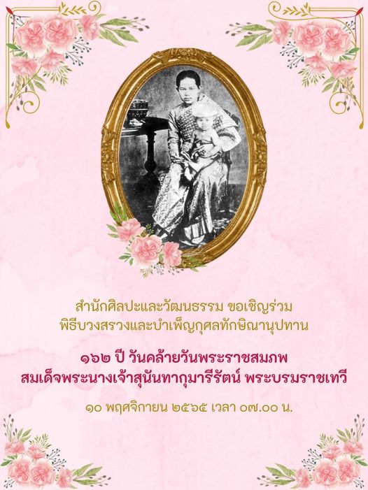 Invitation to join the sacrifice ceremony and make merit Her Majesty Queen Sunandha Kumarirat royal palace On Thursday, November 10, 2022, this year will be the 162nd anniversary of His Majesty's birth.