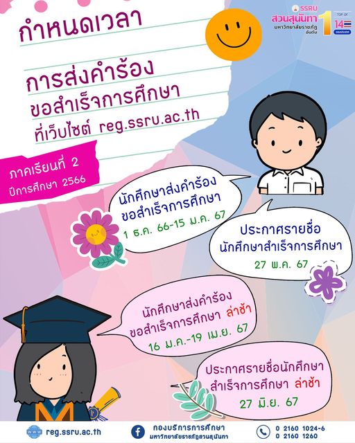 Submit a graduation request For the 2nd semester of academic year 2023 at https://reg.ssru.ac.th