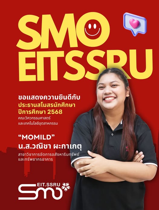 Announcement of Student Club President Appointment for Academic Year 2025, Miss Wanicha Phakakat, a student majoring in Real Estate Management and Building Resources, is hereby appointed as the Student Club President for the Faculty of Engineering and Industrial Technology.