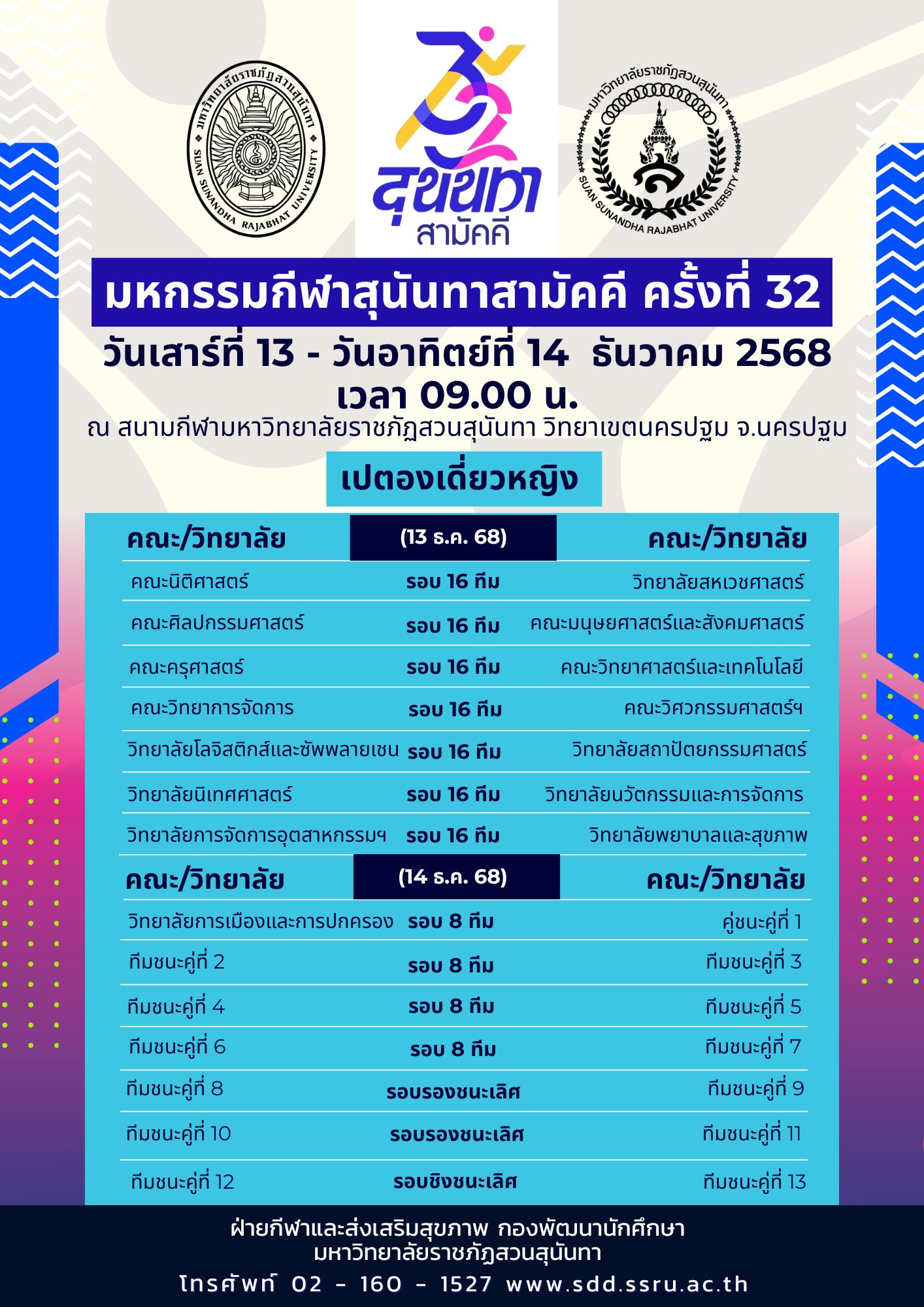 You are cordially invited to cheer on the Engineering athletes at the 32nd Sunandha Samakkhi Sports Games, to be held on 13–14 December 2025.