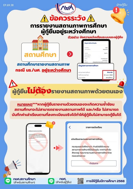 Students who have taken out loans from the Student Loan Fund (SLF) and are currently enrolled in their studies are not required to report their enrollment status by themselves.