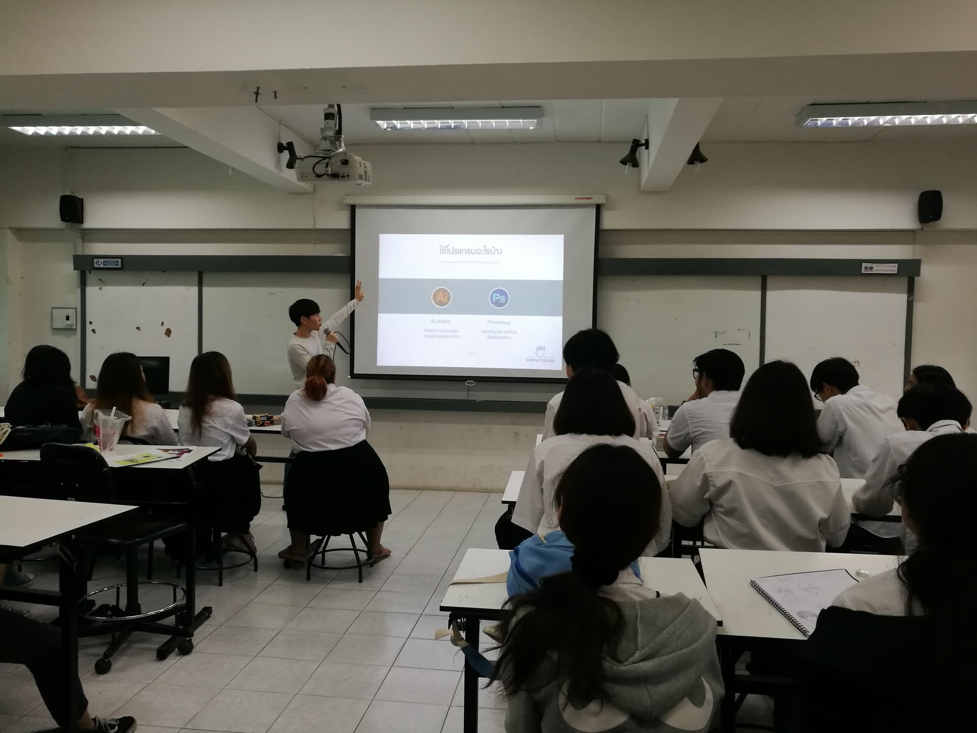 เมื่อวันที่ 29 พฤศจิกายน 2561 อาจารย์จิติมา เสือทอง หัวหน้าสาขาวิชาการออกแบบกราฟิกและมัลติมิเดีย จัดโครงการออกแบบกราฟิกบนบรรจุภัณฑ์ ณ ห้อง 4245 คณะเทคโนโลยีอุตสาหกรรม โดยได้รับเกียรติจากคุณกิจจา วรดำรง นักออกแบบกราฟิกบนบรรจุภัณฑ์ วิทยากรบรรยายเรื่อง แนวคิดและการออกแบบสร้างสรรค์กราฟิกบนบรรจุภัณฑ์ โดยมีนักศึกษาร่วมนำเสนอผลงานที่ได้ออกแบบและขอคำแนะนำการออกแบบจากวิทยากร