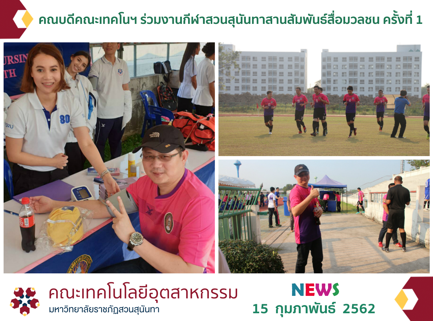 On February 15, 2019, Assistant Professor Dr. Palang Wongtanasuporn, the Dean of the Faculty of Industrial Technology, participated in the 1st Suan Sunandha-Mass Media Games at Suan Sunandha Rajabhat University Stadium, Nakhon Pathom Education Center, held by the University Affairs Committees.