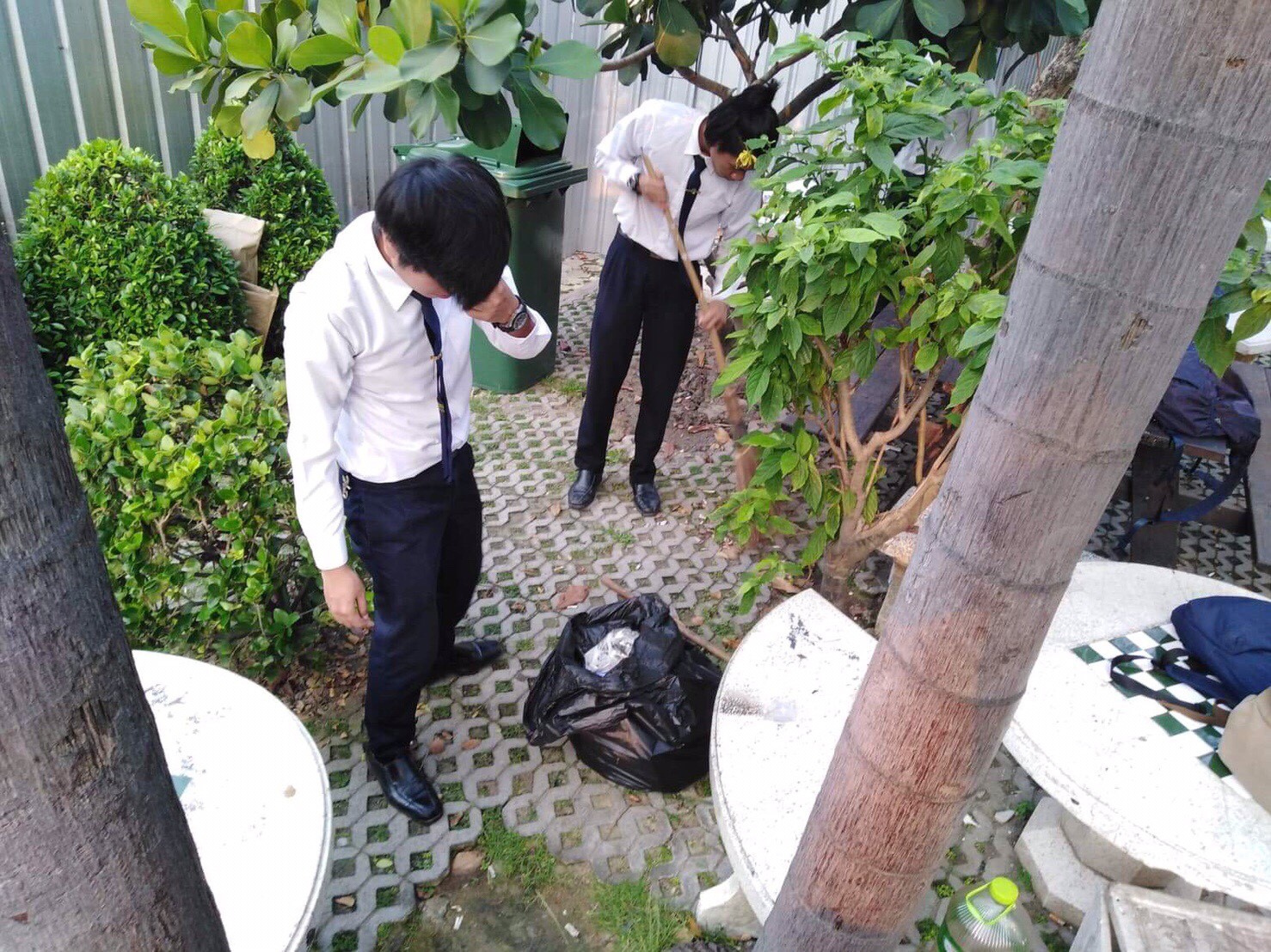garbage around the campus—from the