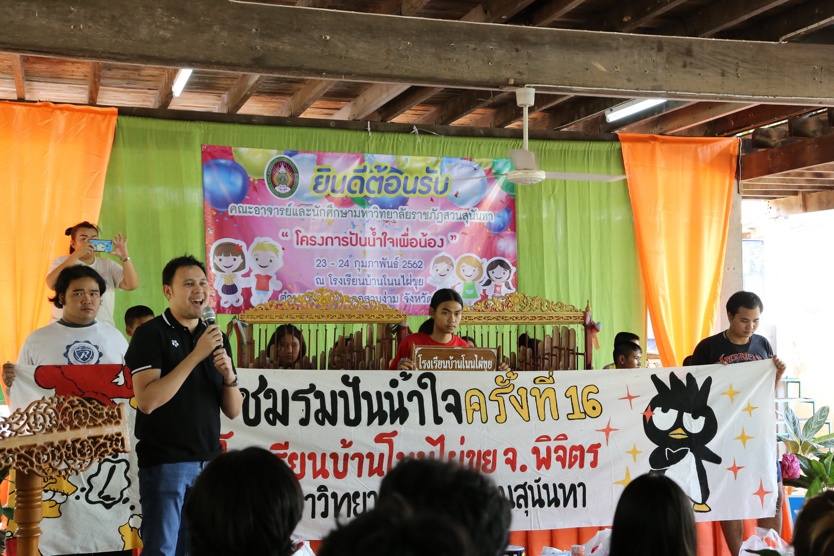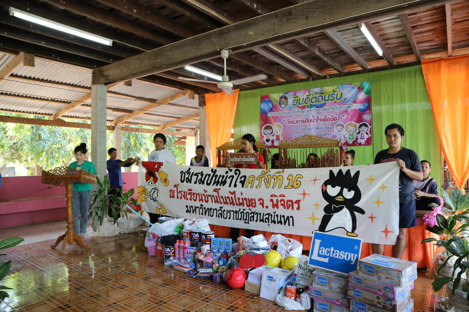 On 23-24 February 2019, Pun-Nam-Jai Club, Suan Sunandha Rajabhat University held the 16th community-contribution activity by visiting Non-Pai-Kui School in Sam Ngam District, Phichit Province, to give school supplies and sport equipment, and Mr. Sahapop Gleblumjeak, the Vice Dean for Student Affairs, Faculty of Industrial Technology, was responsible for giving the supplies and equipment. The event was warmly welcomed teachers, students as well as student's parents. Besides giving supplies and equipment, there were activities, such as coloring buildings, repairing broken playground equipment, decorating classrooms, and creating learning media in order to promote children’s education as well as help them understand an importance of sharing and helping.