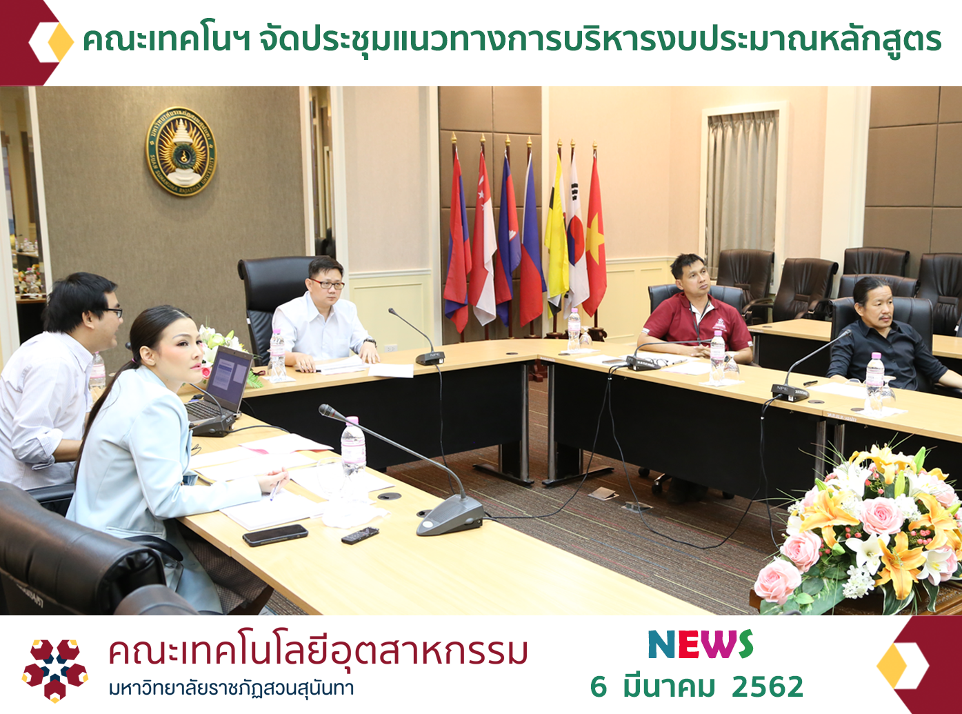 On March 6, 2019, at 1.30 p.m., Assistance Professor Dr. Palang Wongtanasuporn, the Dean of the Faculty of Industrial Technology, presided over the meeting of curriculum budget management approach elucidation beneath the annual budget expenditures for fiscal year 2019 in order to effectively manage the curriculum budget. In the meeting, the vice president, the head of department as well as heads of subjects also participated in the meeting at Pissamai Phimonsat Meeting Room, Building 43, Faculty of Industrial Technology.