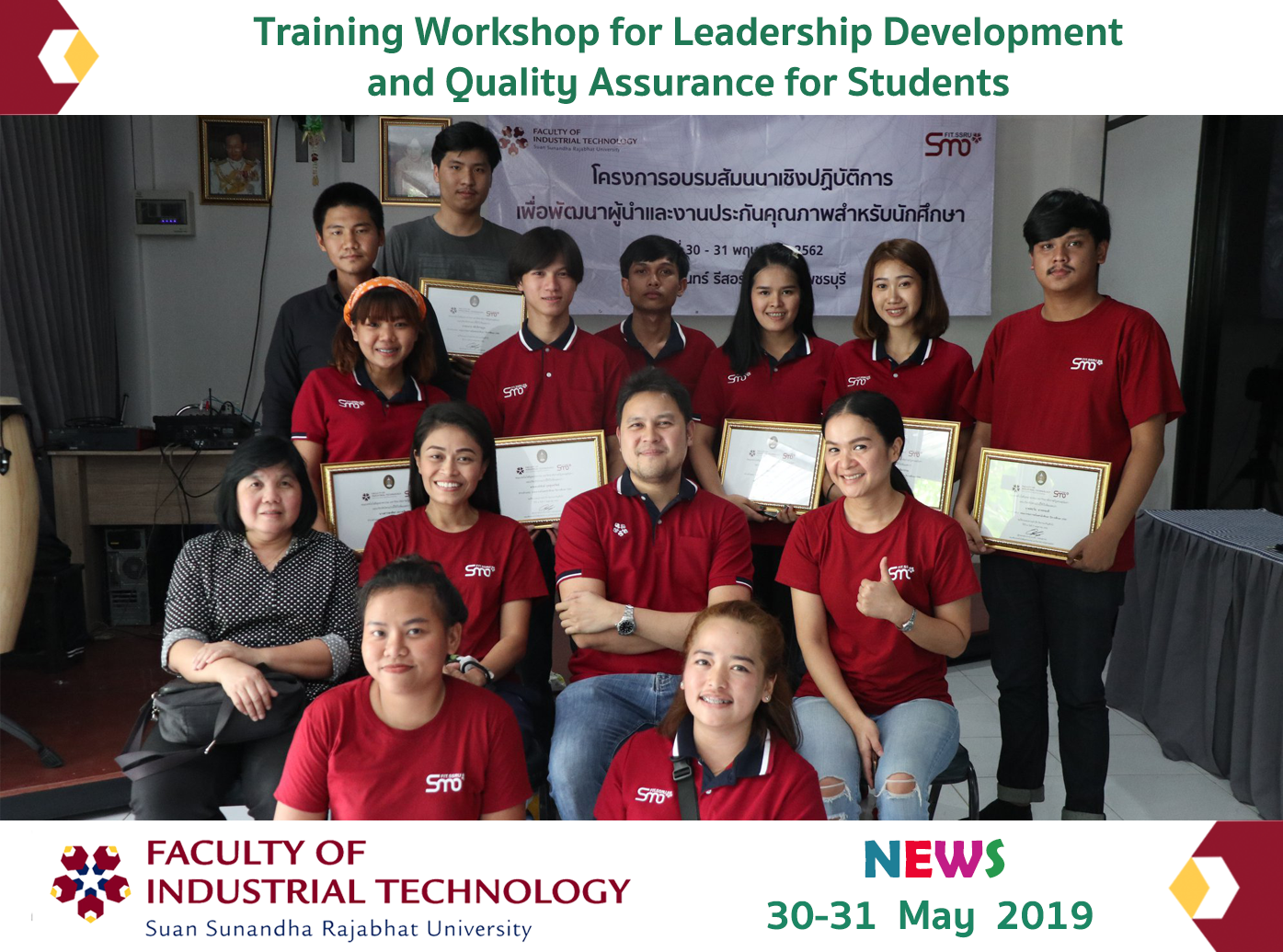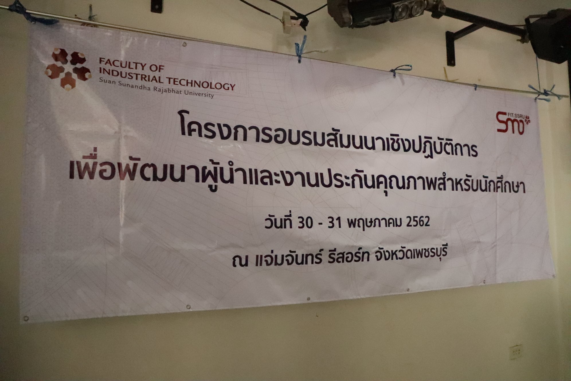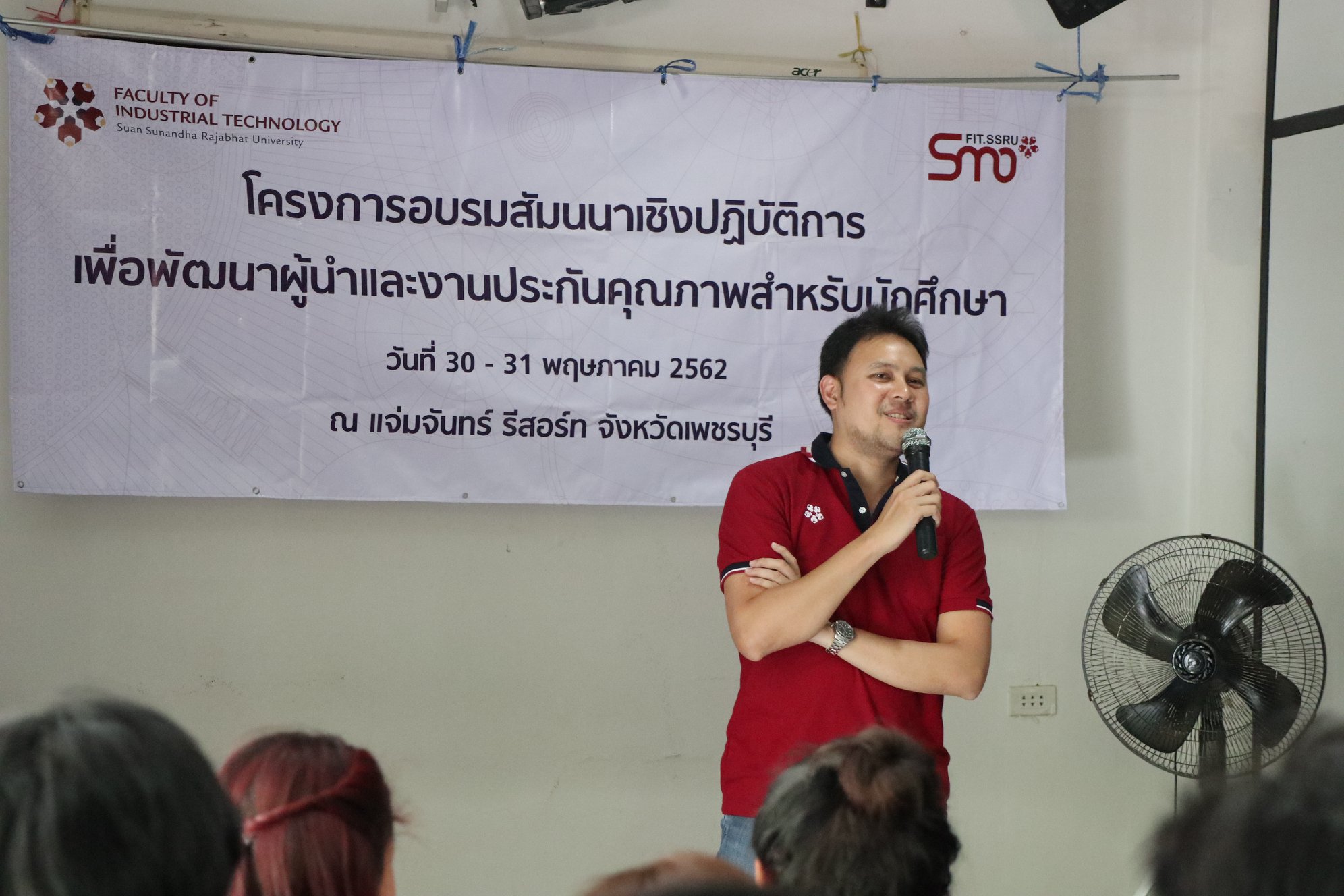 Mr. Sahapop Gleblumjeak, the Vice Dean for Student Affairs of the Faculty of Industrial Technology presided over the opening of workshops for leaders and quality assurance for students between 30 -31 May 2019 at Chamchan Resort, Phetchaburi province by having student representatives participate in the activity plan and find ways to organize activities for the younger Academic Year 2019