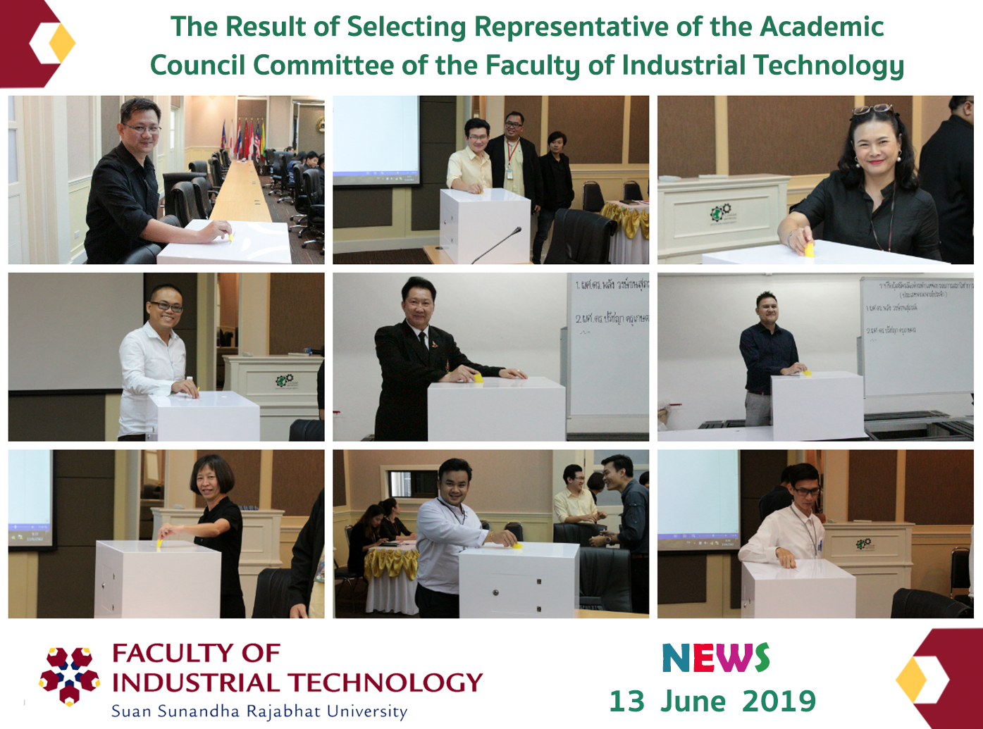 On June 13, 2019, the Faculty of Industrial Technology held a teacher meeting to select the representative of academic council committee of the Faculty of Industrial Technology. The vote-counting committees started to count the scores at 4.31 p.m. at the Dean’s office of Faculty of Industrial Technology, and the results showed that