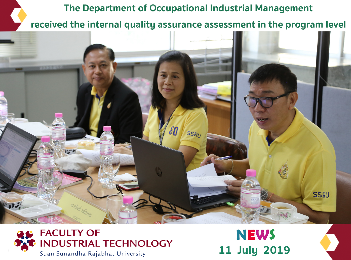 The Department of Occupational Industrial Management, the Faculty of Industrial Technology received the internal quality assurance assessment in the program level on July 11, 2019, at Room 4330, Building 43, the Faculty of Industrial Technology. The external qualified committees included: