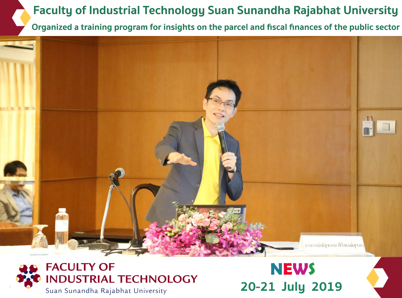 Faculty of Industrial Technology Suan Sunandha Rajabhat University Organized a training program for insights on the parcel and fiscal finances of the public sector, Class 2 on 20-21 July 2019, at the Royal River Hotel, Bangkok, with Prof. Picha Sripanchanthe Vice-Dean for Administration of the Faculty of Industrial Technology, Suan Sunandha Rajabhat University, Presided over the opening ceremony The training is aimed at Let the participants have knowledge Understanding of laws, regulations, and practices related to procurement and the management of public goods General knowledge and administration in finance, public sector By being honored by Teacher Natthachon Siripongsurapa and Teacher Kittima As a lecturer