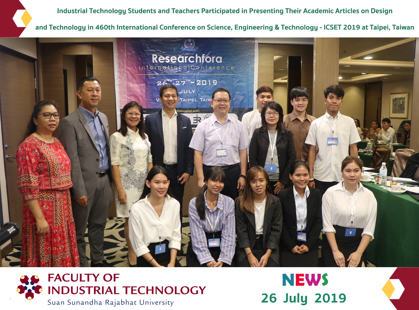 Recently, the Faculty of Industrial Technology, Suan Sunandha Rajabhat University, Dr. Chonmapat Torasa, the Vice Dean for Academic Affairs, took 15 people comprising of students as well as teachers to present their academic articles in 460th International Conference on Science, Engineering & Technology - ICSET 2019 at Taipei, Taiwan. The topics which were presented including: