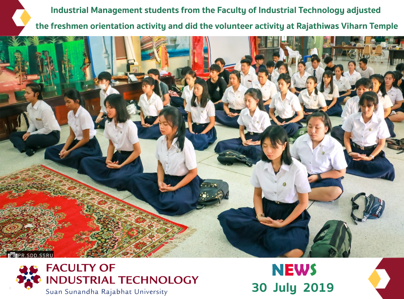 Industrial Management students from the Faculty of Industrial Technology adjusted the freshmen orientation activity and did the volunteer activity at Rajathiwas Viharn Temple