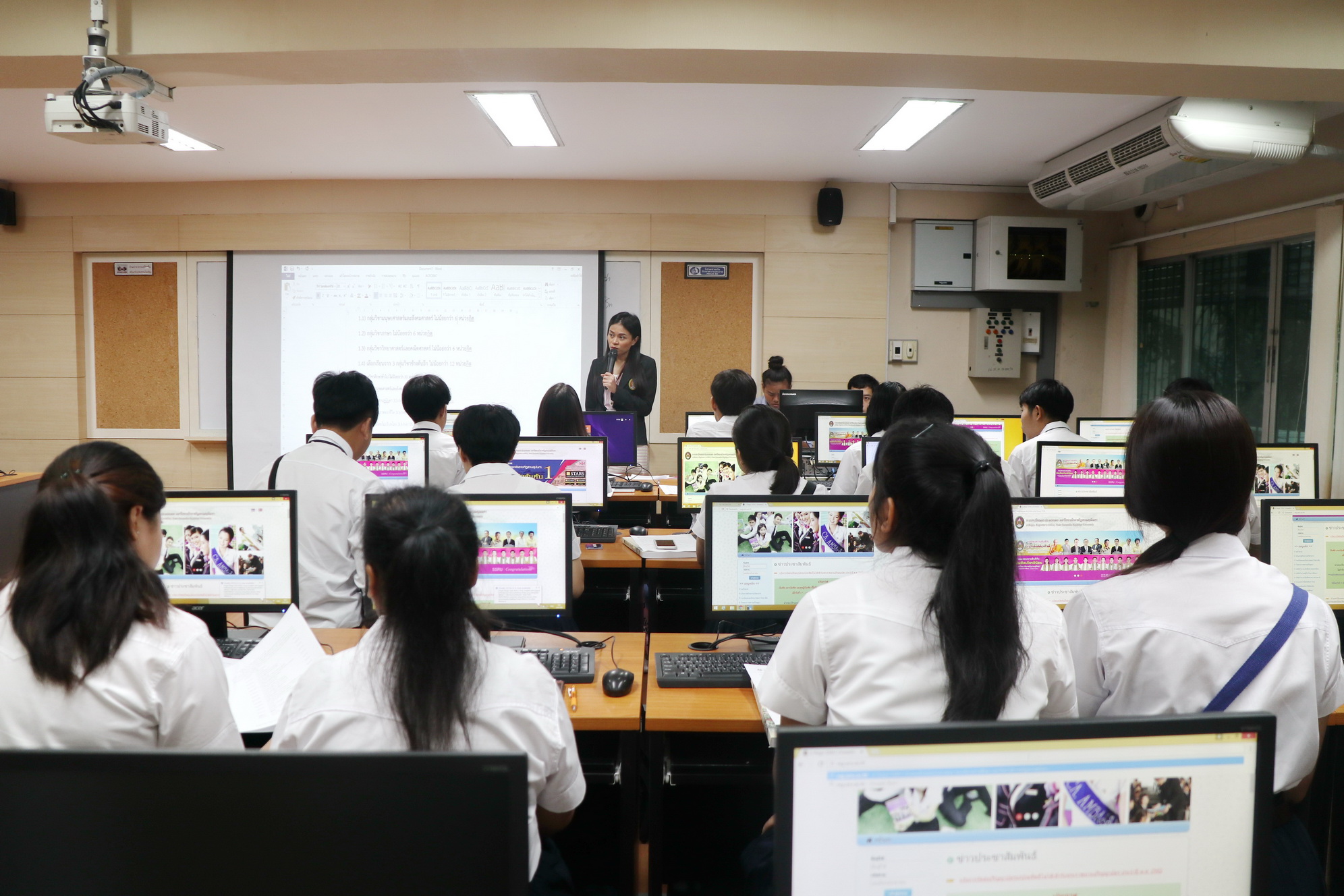 On August 2, 2019, the Education Services Department, the Faculty of Industrial Technology, organized the training on free enrollment as well as study plan for the first-year Graphic and Multimedia Design students (student ID 62). There were 91 students participated in this training at Room 4222, Building 42, the Faculty of Industrial Technology.