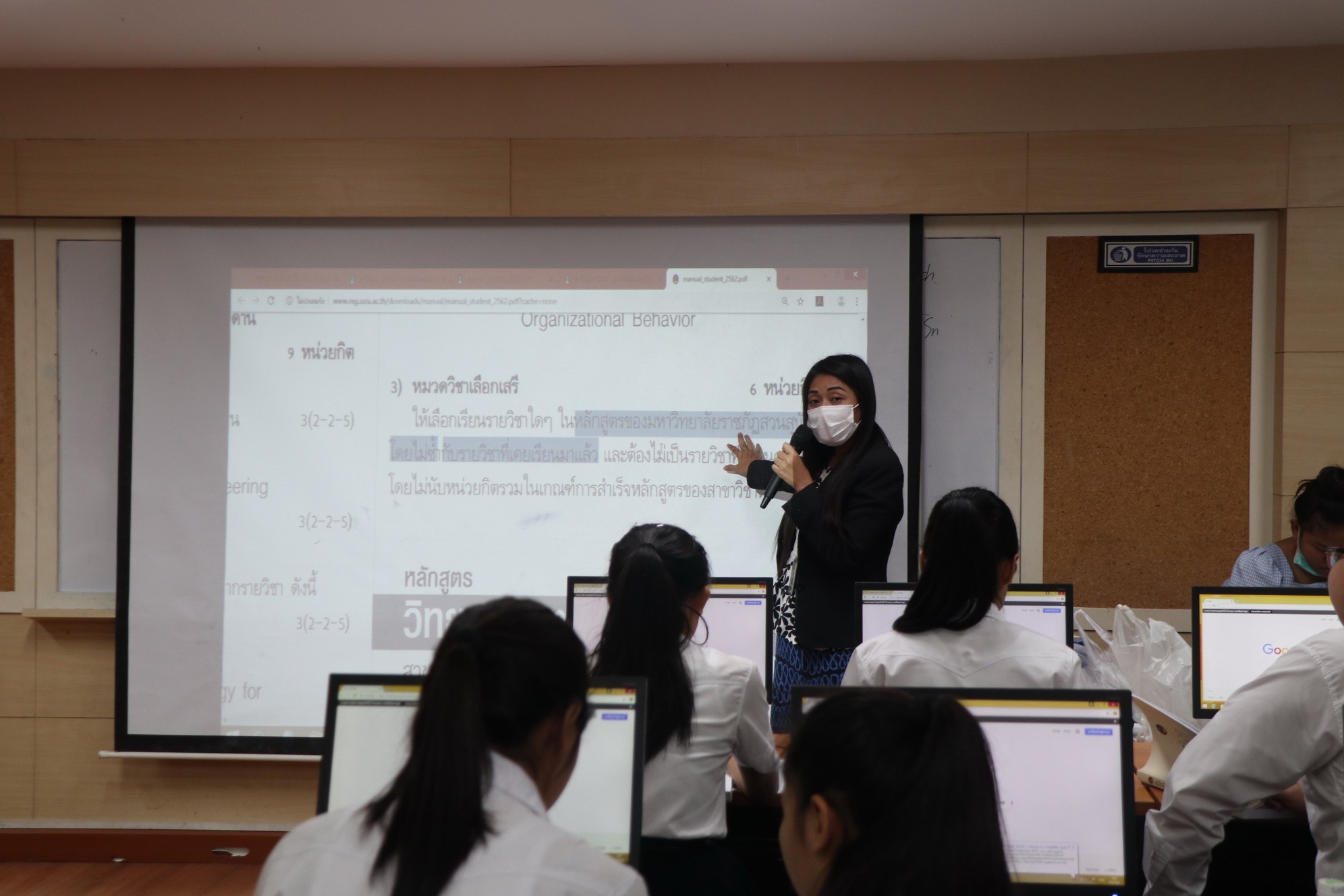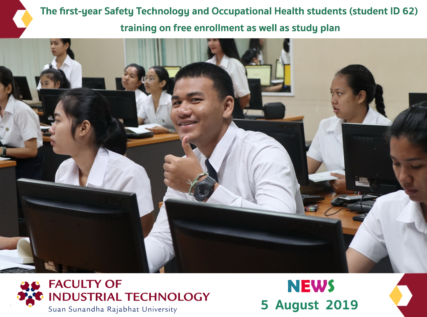 On August 5, 2019, the Education Services Department, the Faculty of Industrial Technology, organized the training on free enrollment as well as study plan for the first-year Safety Technology and Occupational Health students (student ID 62). at Room 4222, Building 42, the Faculty of Industrial Technology