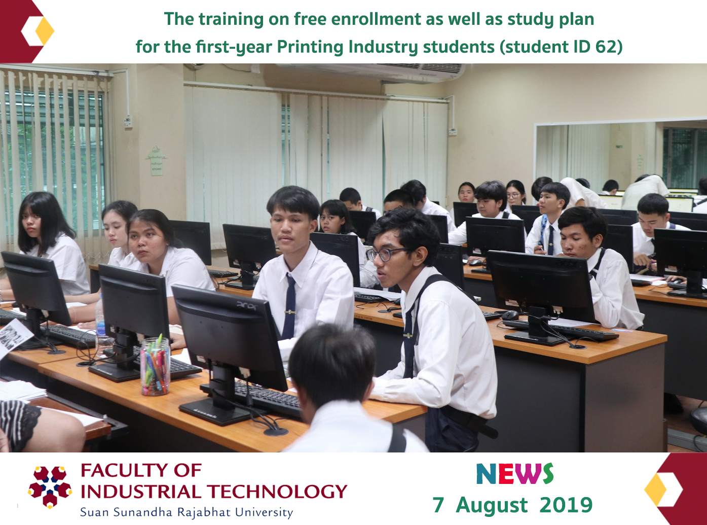 On August 7, 2019, the Education Services Department, the Faculty of Industrial Technology, organized the training on free enrollment as well as study plan for the first-year Printing Industry students (student ID 62). at Room 4222, Building 42, the Faculty of Industrial Technology.