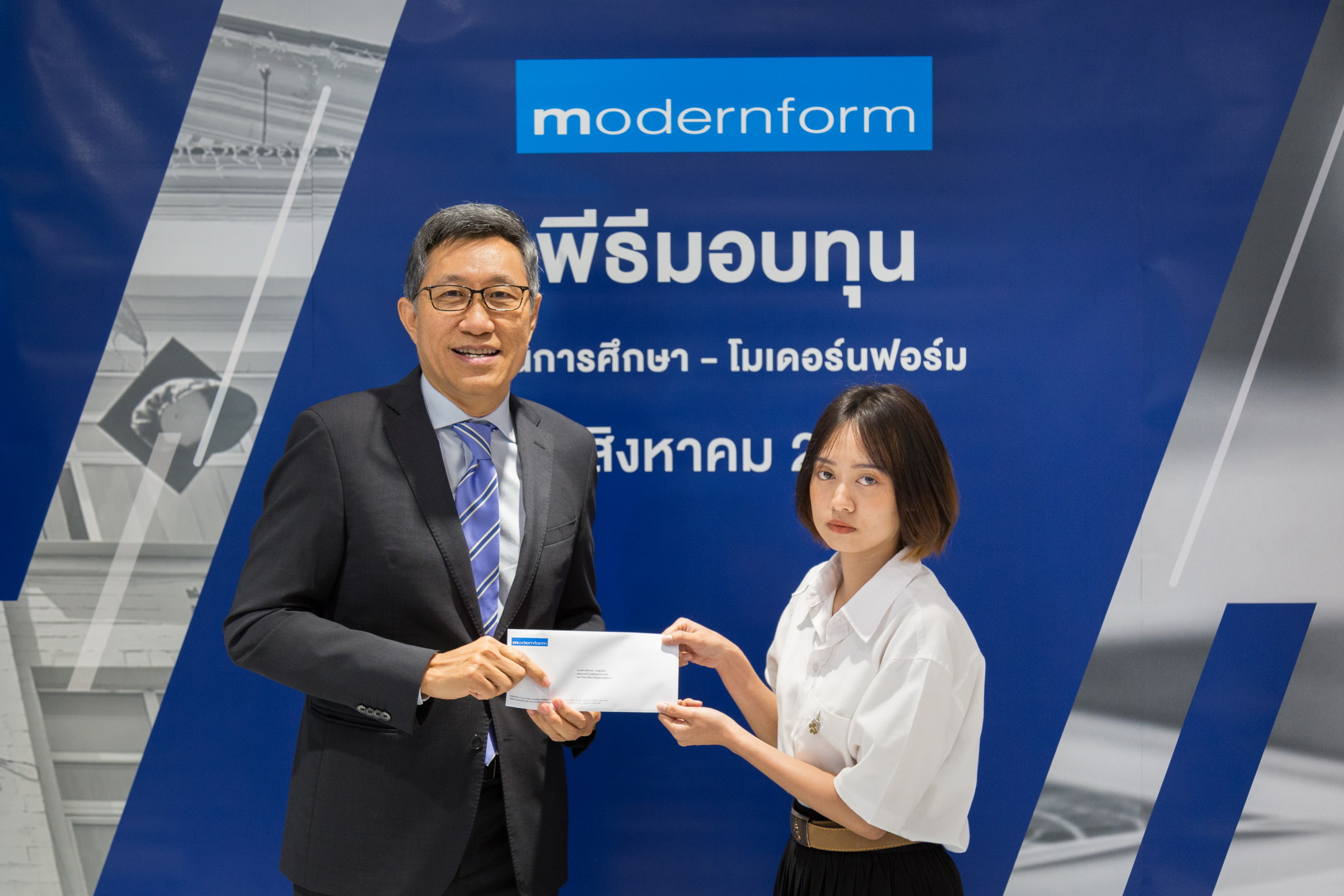 On August 26, 2019, Miss Lakkana Kumsoongnern, the Industrial Product Design student from the Faculty of Industrial Technology, was awarded the academic excellence scholarship by Mr. Kitipat Nuengjumnong, the Managing Director of Modernform Group Public Company Limited, in the ceremony of “Modernform Scholarship 2019” at Modernform Tower Srinakarin.