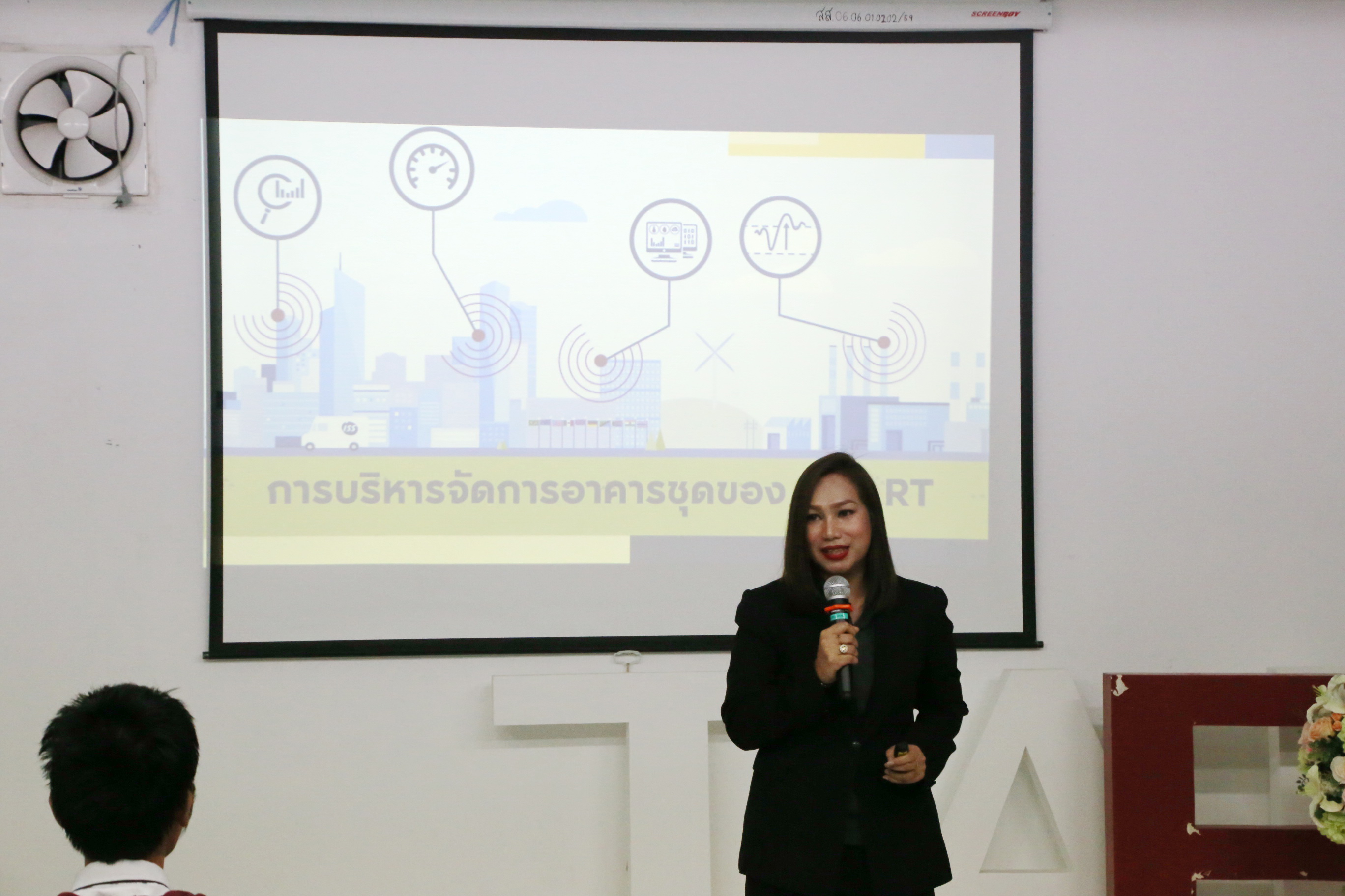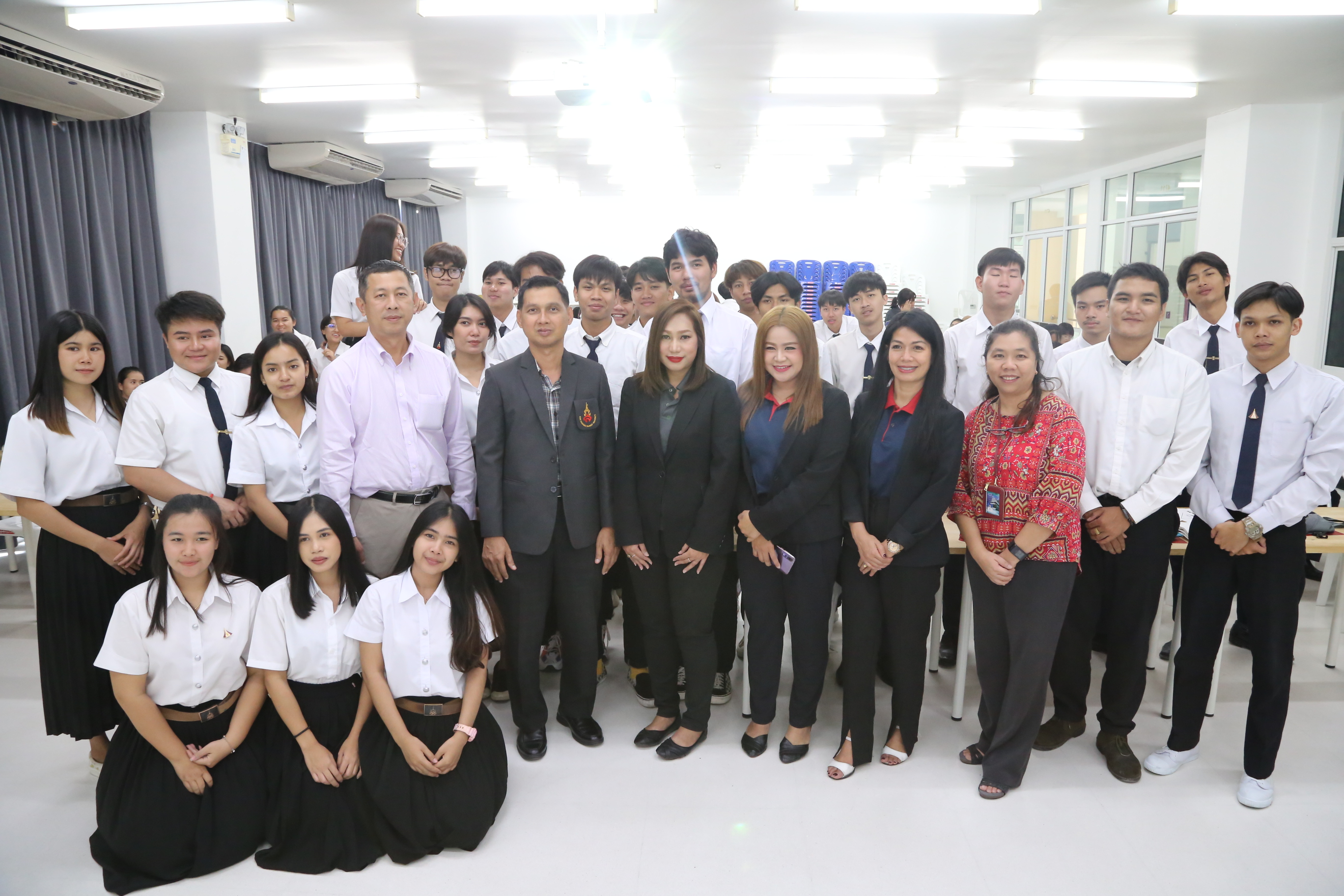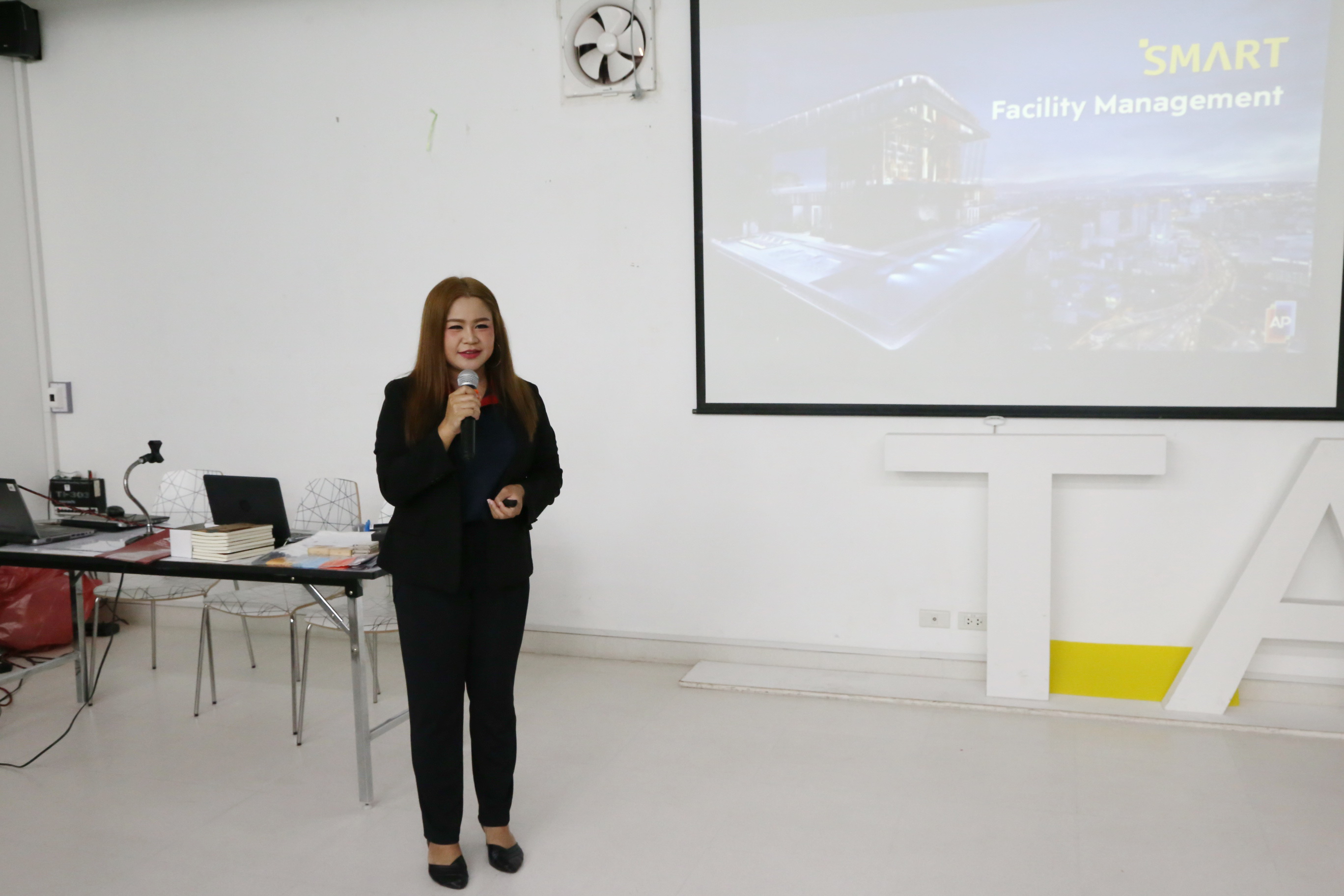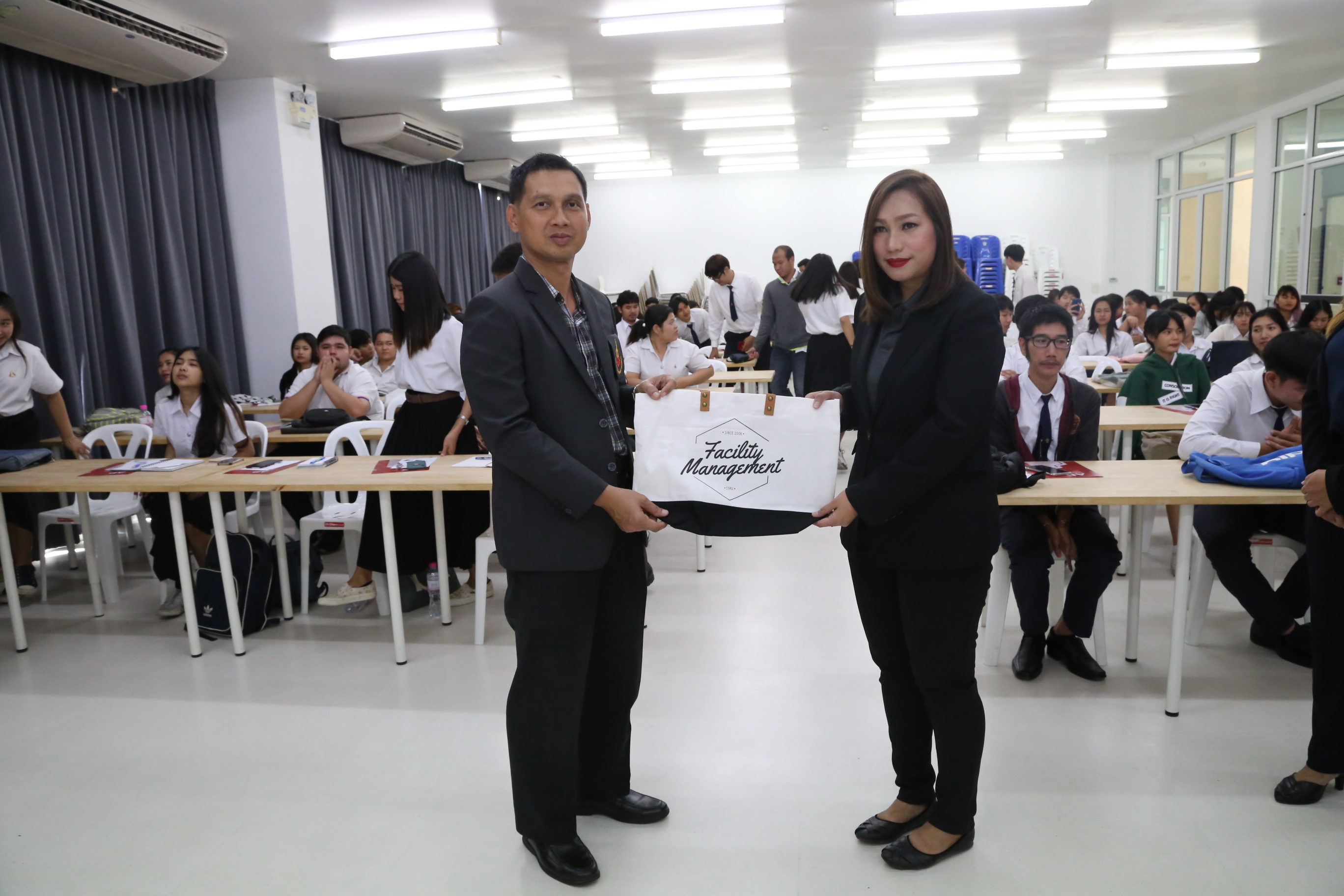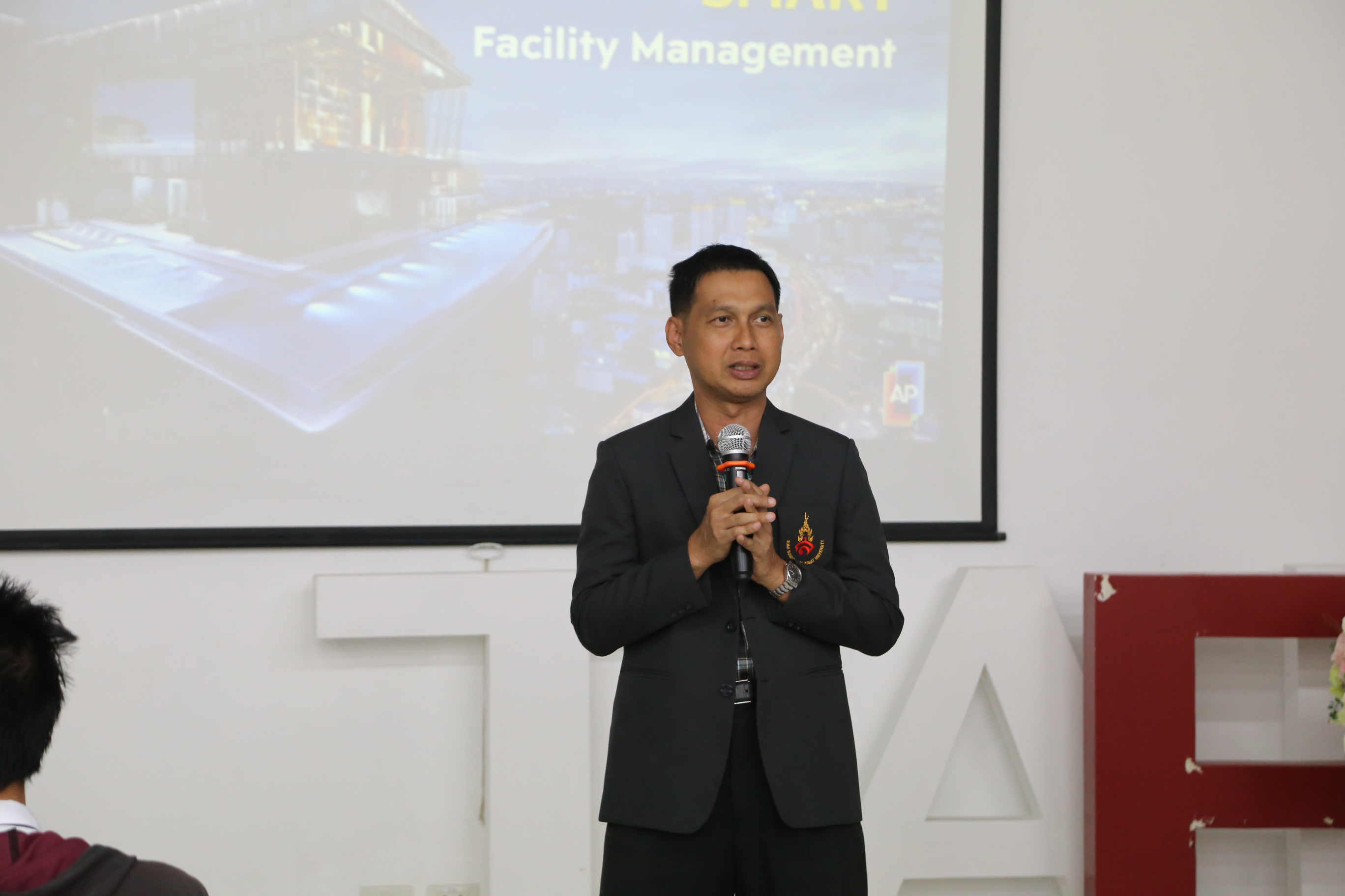 On September 24, 2019, at 01.00 p.m., the Department of Facility Management, the Faculty of Industrial Technology, welcomed Ms. Pakamon Panuthanasiri, the Area Manager and Ms. Ketsarin Intakorn, the Supervisor of Sourcing Human Resources Department, who were honored to be a speaker in the keynote lecture under the topic “SMART Facility Management” organized by AP Academy at Room 4711, Building 47. In this event, Dr. Chonmapat Torasa,the Vice Dean for Academic Affairs, presided to give an opening speech, and there were teachers, first-year students as well as fourth-year students from the Department of Facility Management around 60 people also participated in the keynote lecture. This keynote lecture aimed to provide students the knowledge and real experience from the facility management experts so that they can apply it into their studying as well as working in the future.