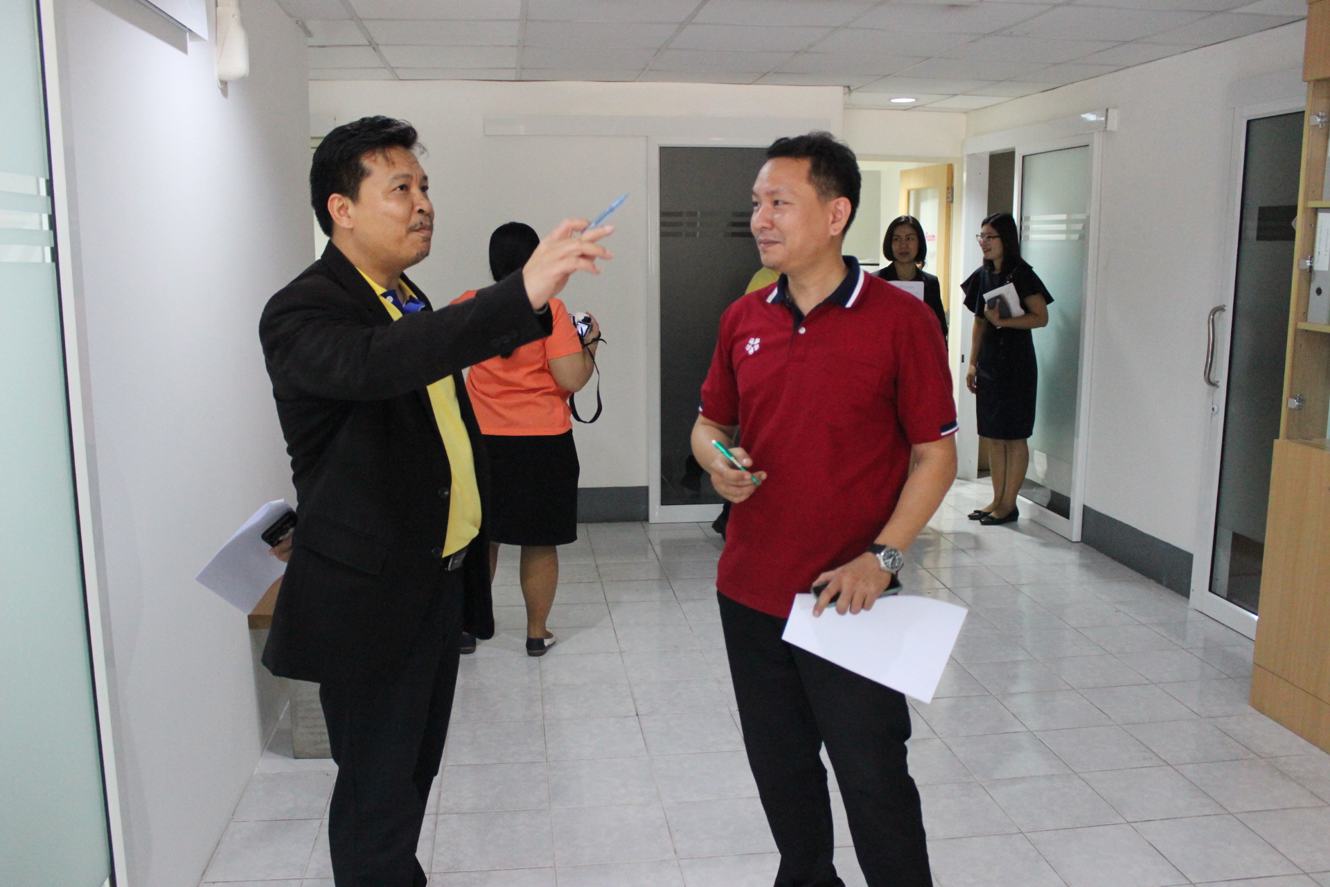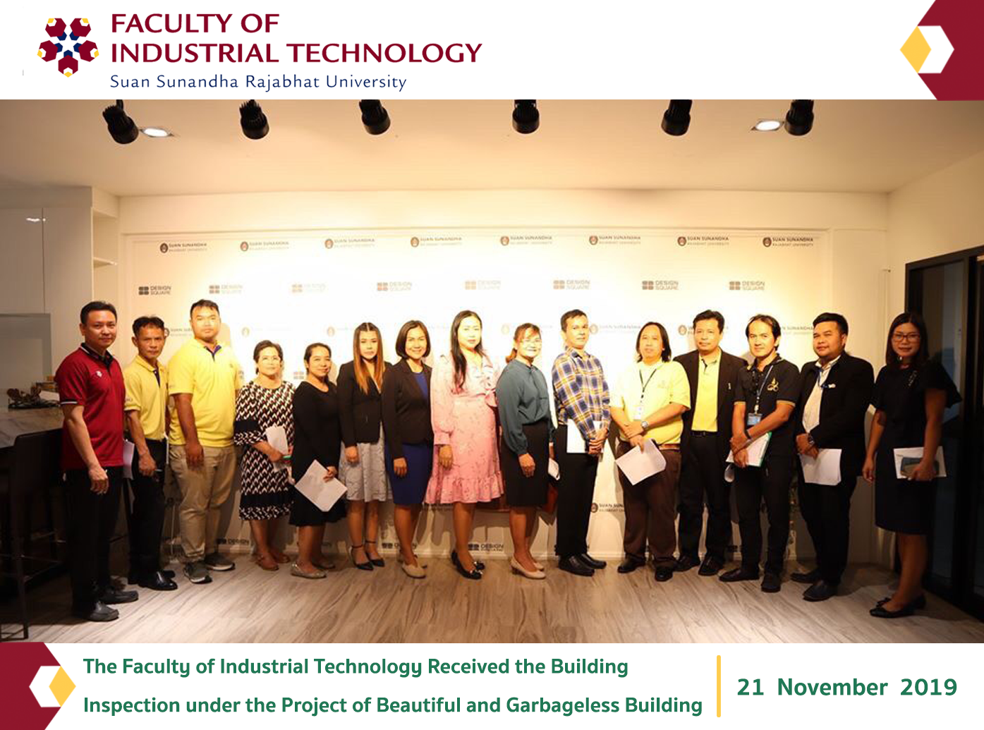 On November 21, 2019, Miss Chayapa Chaemsai, the Head of the Dean's Office, as well as Mr. Cheewin Chinnadeloakvanich, the Staff who was responsible for the building and premise project in the Faculty of Industrial Technology, welcomed the committees of building inspection under the project of Beautiful and Garbageless Building at Building 42, Building 43 and Building 47.