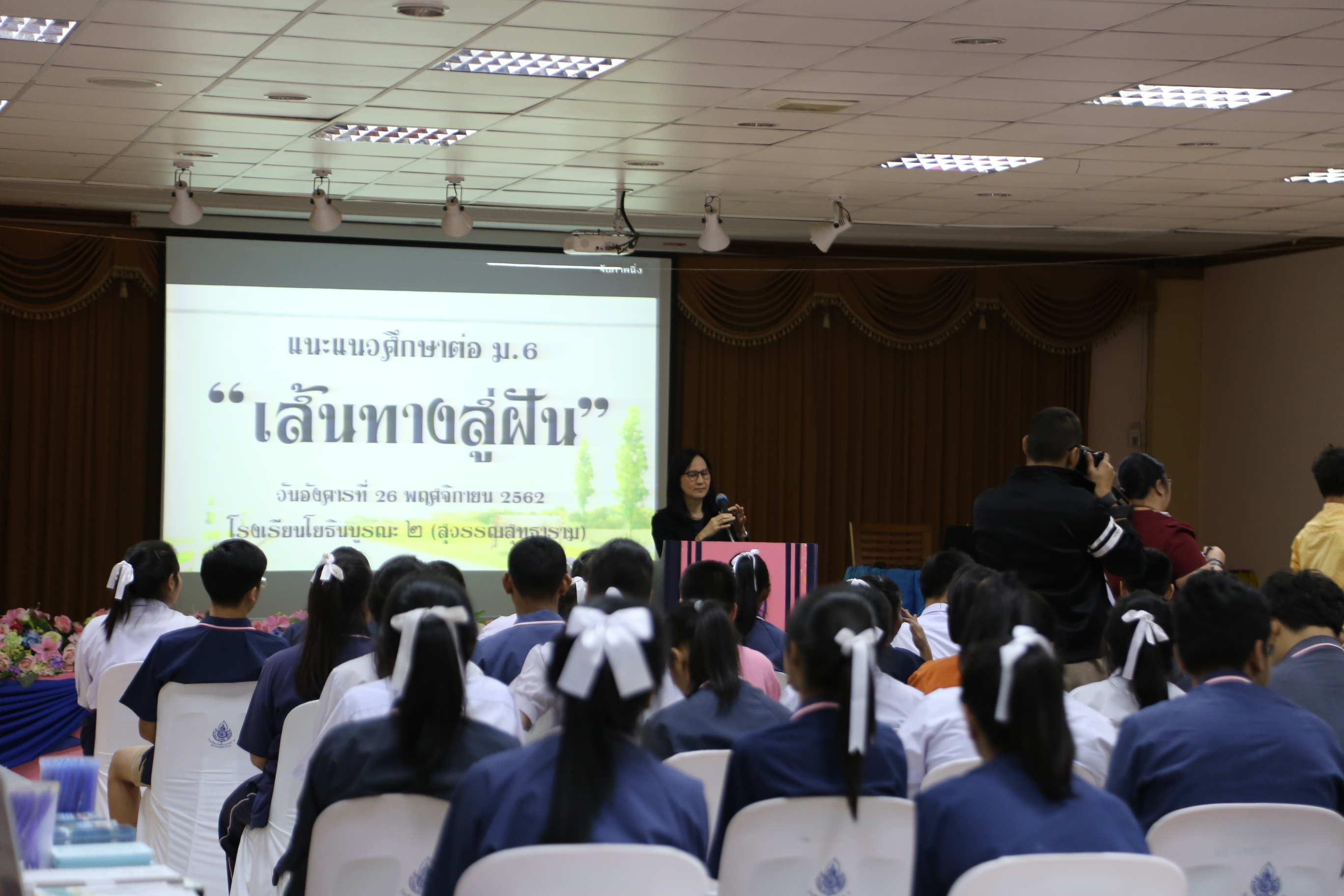 On November 26, 2019, the Faculty of Industrial Technology led by Mr. Sahapop Gleblumjeak, the Vice Dean for Student Affairs, as well as Assistance Professor Dr. Preechaya Krukaset, the Head of the Department of Interior and Exhibition Design, Mrs. Jitravadee Roongin Kunkar, the Head of the Department of Facility Management, and the representatives of students from each department participated in the activity of educational guidance for students in Mattayom 6 at Yothinburana 2 School (Suwan Sutharam). This event aimed to inform people who participated in the activity about the study courses and programs offered, the registration as well as admission criteria in order to obtain students who have knowledge, ability and aptitude that are most consistently associated to each program.