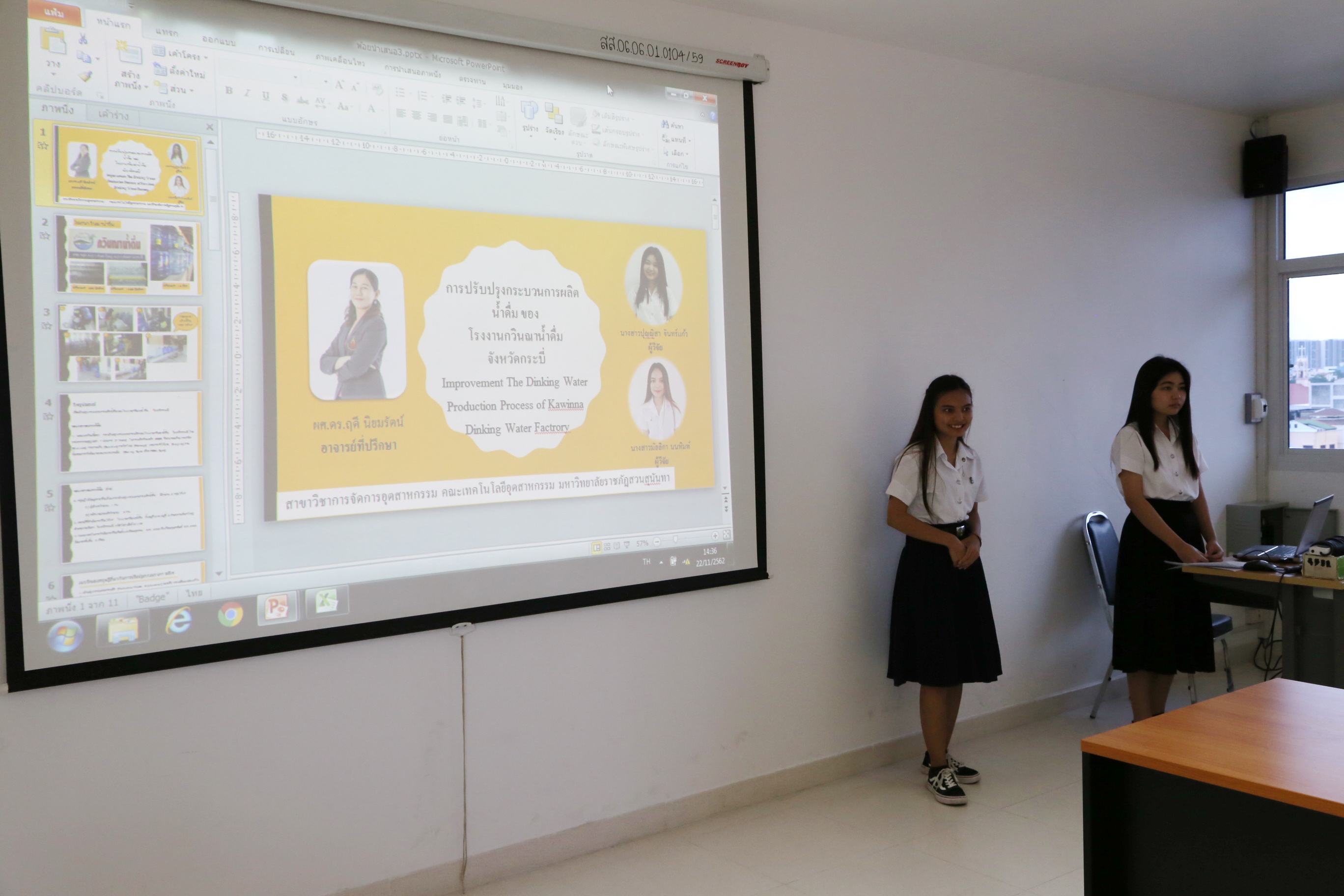The Department of Industrial Management, the Faculty of Industrial Technology, organized the proposal defense of the 3rd-year students who enrolled in the Industrial Management Research course, the semester 1/2019. There were 25 groups of students accomplished the oral proposal defense as well as 5 committees who were a teacher of the course. The activities in this proposal defense consisted of students’ proposal presentation, questions and answers, and committees’ suggestion provision.