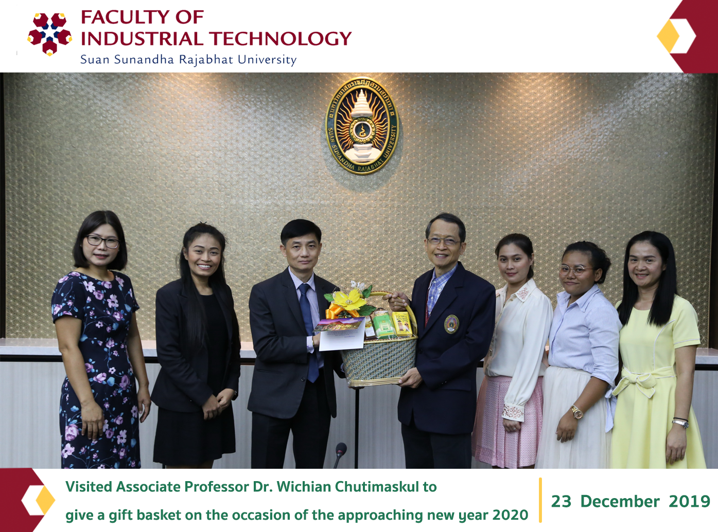 On December 23, 2019, the Faculty of Industrial Technology led by Assistant Professor Dr. Athisamai Sophan, the Acting Dean of the Faculty of Industrial Technology, as well as Miss Chayapa Jamsai, the Head of the Dean's Office and the Personnel of the Faculty of Industrial Technology, visited Associate Professor Dr. Wichian Chutimaskul to give a gift basket on the occasion of the approaching new year 2020 at Suan Sunandha Rajabhat University Council Meeting Room.