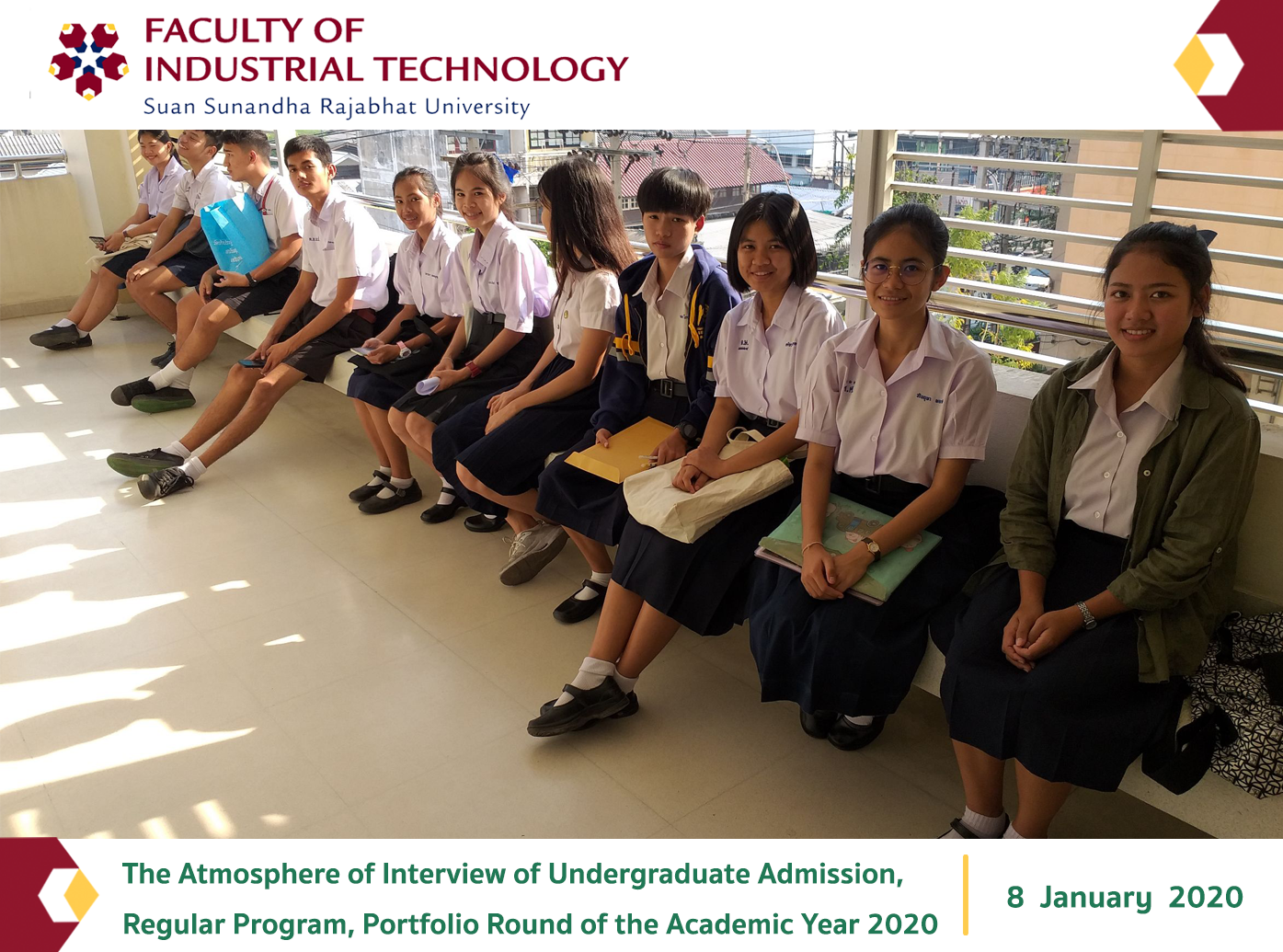 On January 8, 2020, the Faculty of Industrial Technology organized an interview for undergraduate admission, regular program, Portfolio round of the academic year 2020 at the Building of the Faculty of Industrial Technology, Suan Sunandha Rajabhat University.