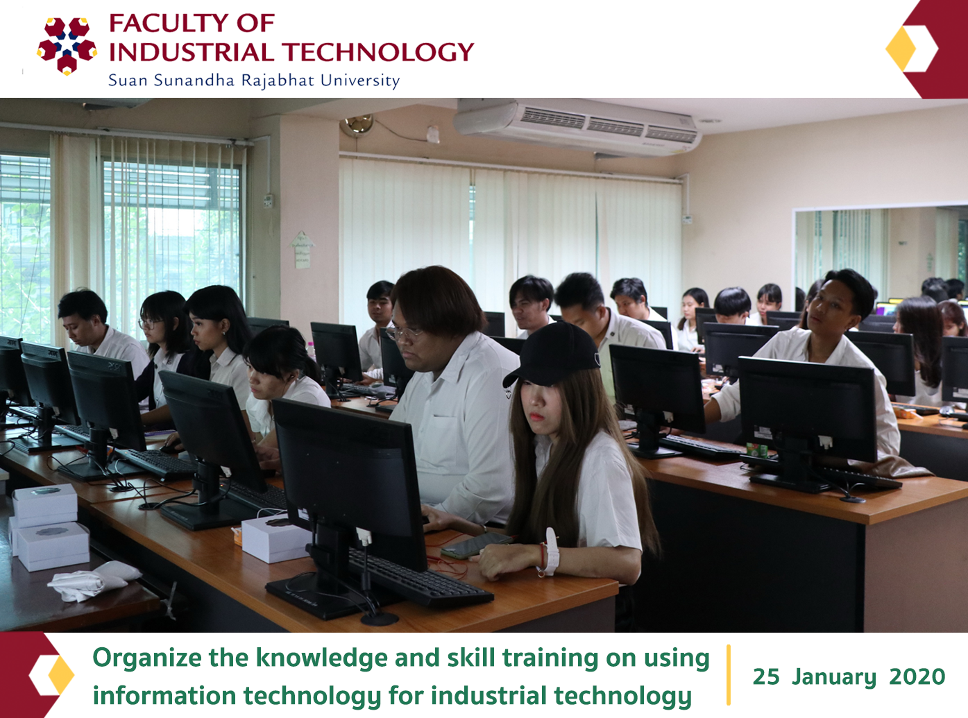 On January 25, 2020, at 09.00 a.m. – 4.00 p.m., the Division of Student Affairs and Art and Culture, the Faculty of Industrial Technology, announced to organize the knowledge and skill training on using information technology for industrial technology students for the 1st-3rd year students who were interested in the use of information technology. This training consisted including Microsoft Office (Microsoft Word, PowerPoint, Excel) at the Computer Laboratory, the Faculty of Industrial Technology. In addition, the keynote speakers included Dr. Sethakarn Prongnuch, the Head of Computer Engineering Program, the Faculty of Industrial Technology.