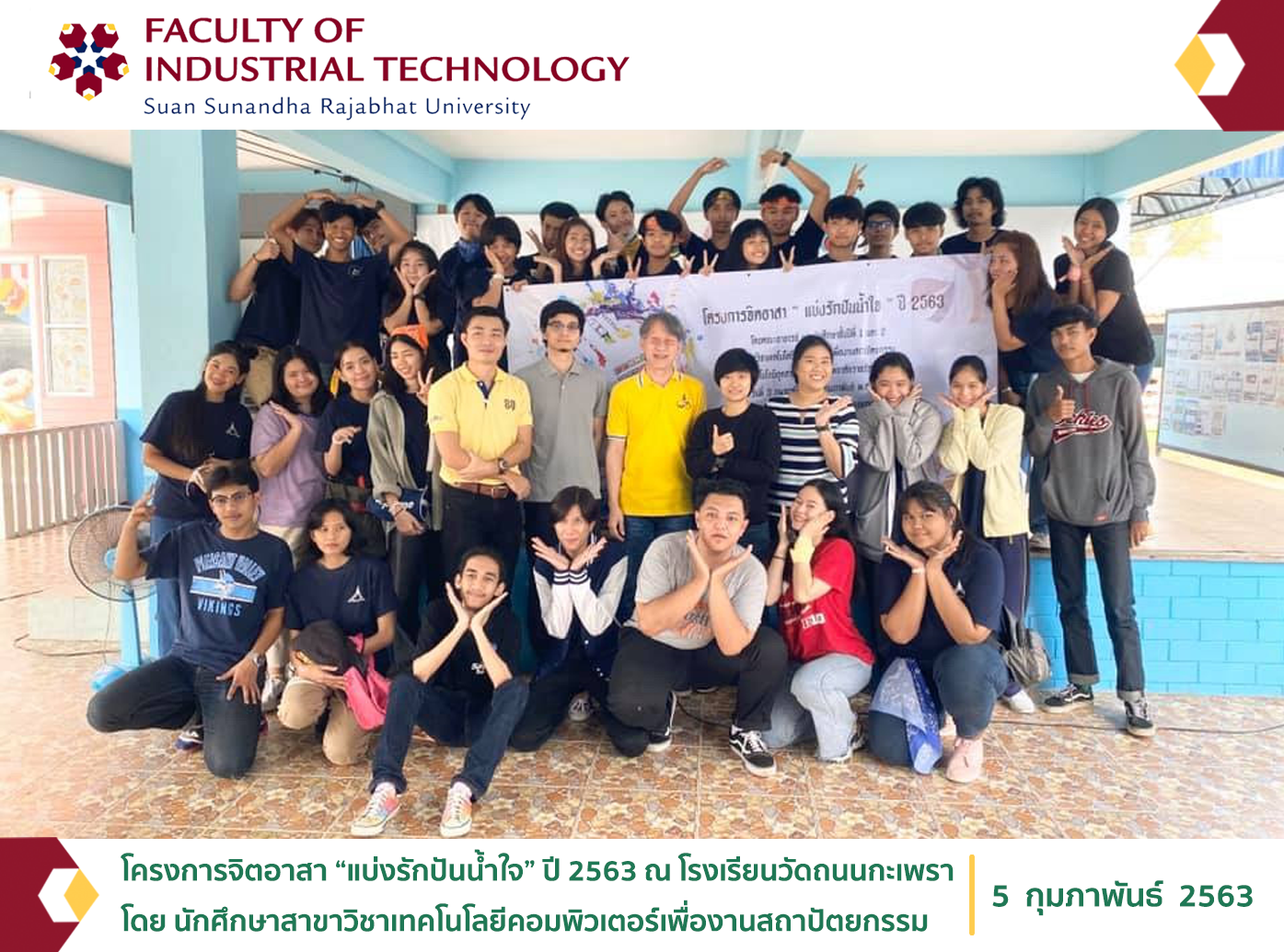 Volunteer project "Sharing Love Sharing Kindness" year 2020 at temple thanap kapra School, rayong province, by the 1st and 2nd year student teachers of the department of Technology Computer Application in Architecture faculty of industrial technology