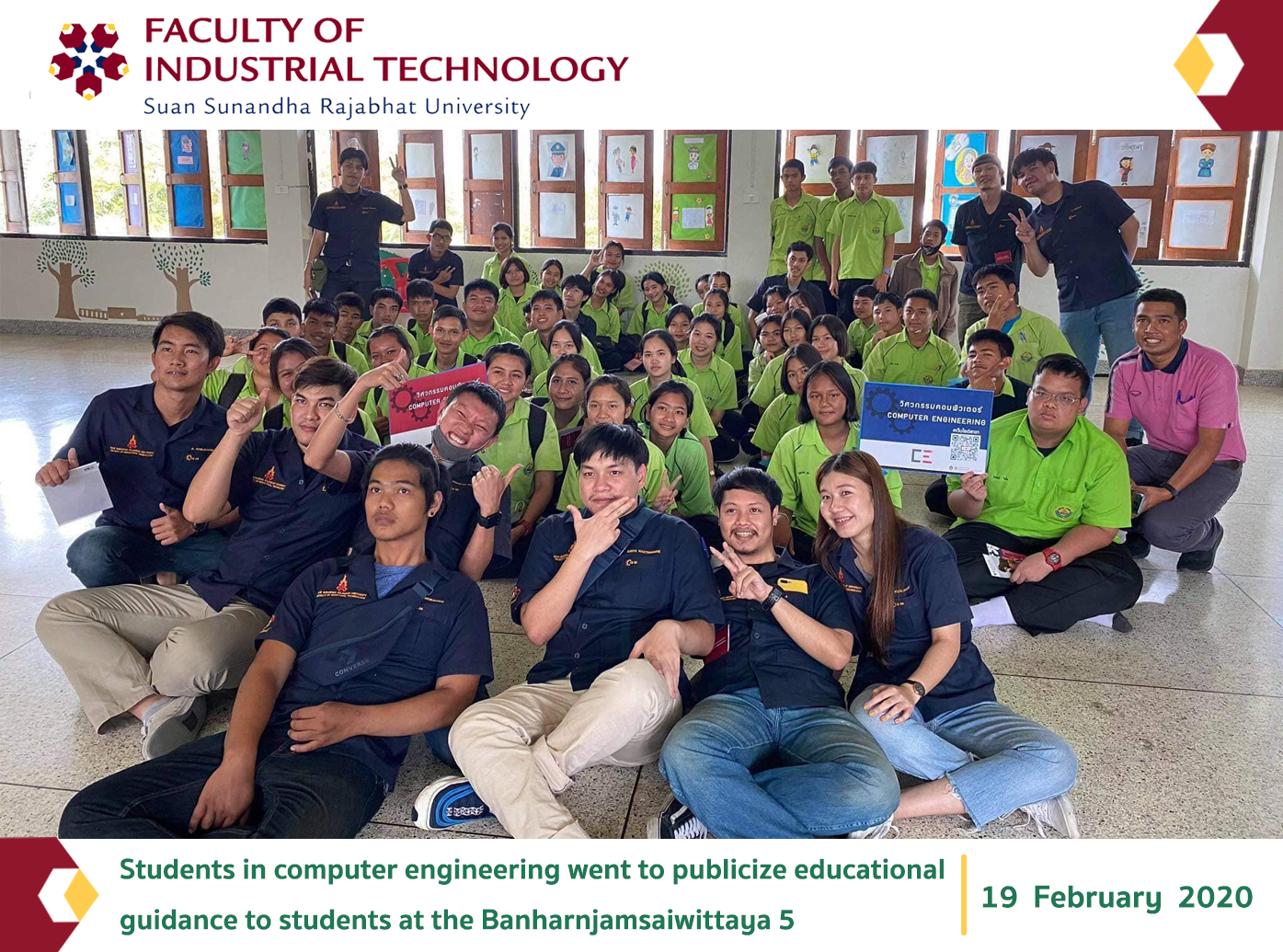 Wednesday, February 19, 2020, students in computer engineering went to publicize educational guidance to students at the Banharnjamsaiwittaya 5 School, Suphanburi Province, which has activities on basic computer knowledge for children and rewards for the children who participated