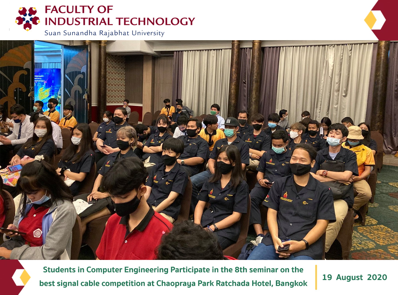 August 19, 2020 Dr.Sethakarn Prongnuch head of Computer Engineering, Narong Narongrat, head of Electrical Technology Department And Lecturer Aphirak Thitinaruemit, deputy Director of the Office of Academic Resources and Information Technology Along with the 2nd and 3rd year students in Computer Engineering Participate in the 8th seminar on the best signal cable competition at Chaopraya Park Ratchada Hotel, Bangkok, to give students the opportunity to show their talent in the world-class competition by experiencing the best cable technology in modern times. And the opportunity to represent Thailand The World Skills competition brings new technical knowledge and technology. Received from the training to apply it in the future