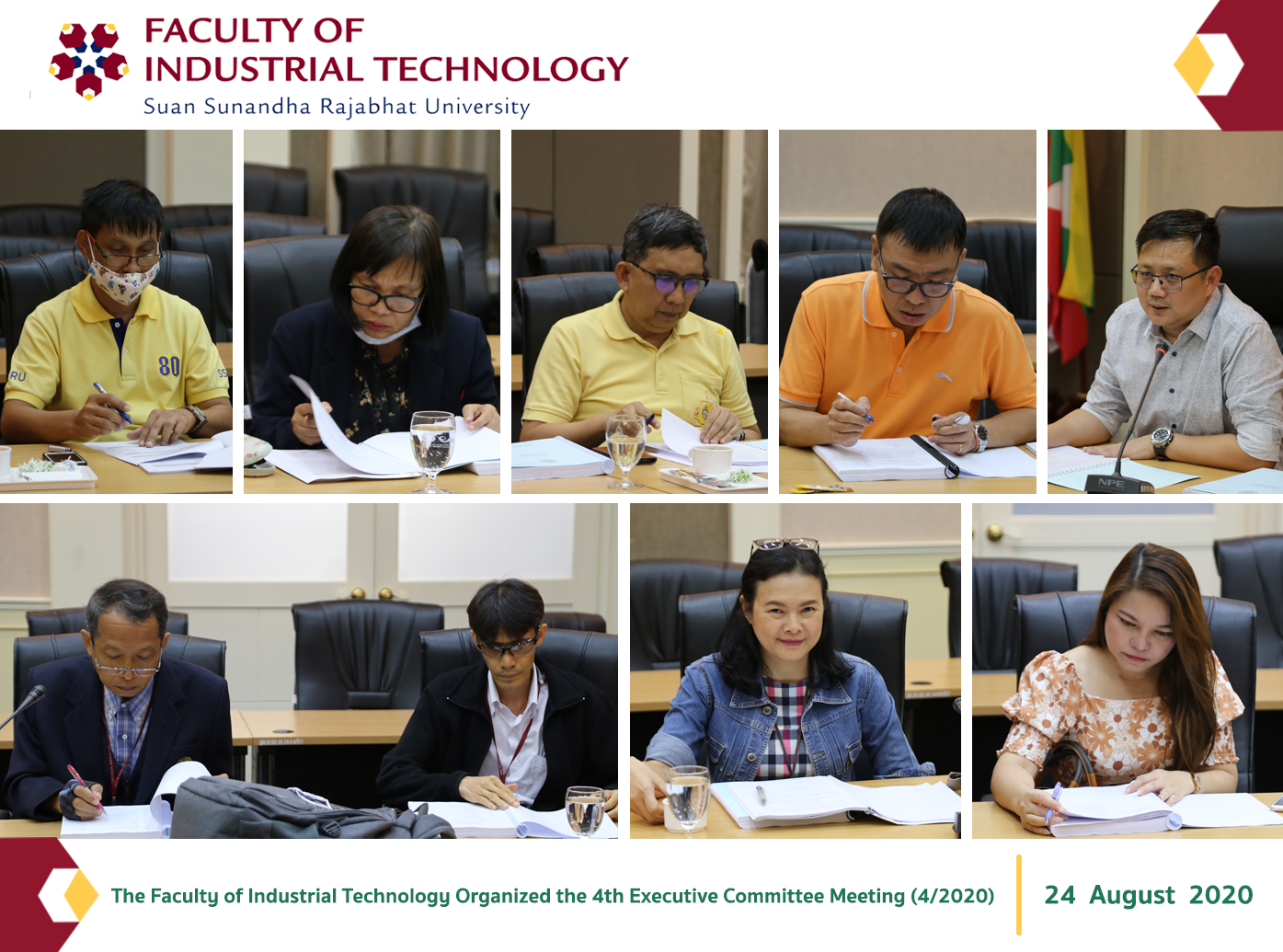 On Monday of August 24, 2020, at 01.30 p.m., the Faculty of Industrial Technology, Suan Sunandha Rajabhat University, organized the 4th executive committee meeting of the Faculty of Industrial Technology, and Assistant Professor Dr. Palang Wongtanasuporn, the Dean of the Faculty of Industrial Technology, presided over the meeting. In addition, the qualified committees, administrators as well as the head of the Dean’s Office also participated in the meeting, and the proposed agendas included considering the (draft) action plan of the fiscal year 2021, considering the result of internal quality assurance in curriculum level of the academic year 2020, and considering the (draft) Bachelor of Science Program in Electrical Technology Curriculum, revised version 2021, presented by Assistant Professor Dr. Athisamai Sophan, Assistant Professor Dr. Pornpawit Boonsrimuang and Mr. Narong Narongrat at Pissamai Phimonsat Meeting Room, Building 43, Faculty of Industrial Technology.