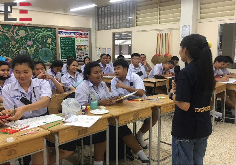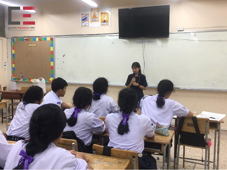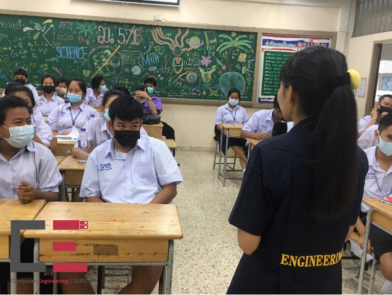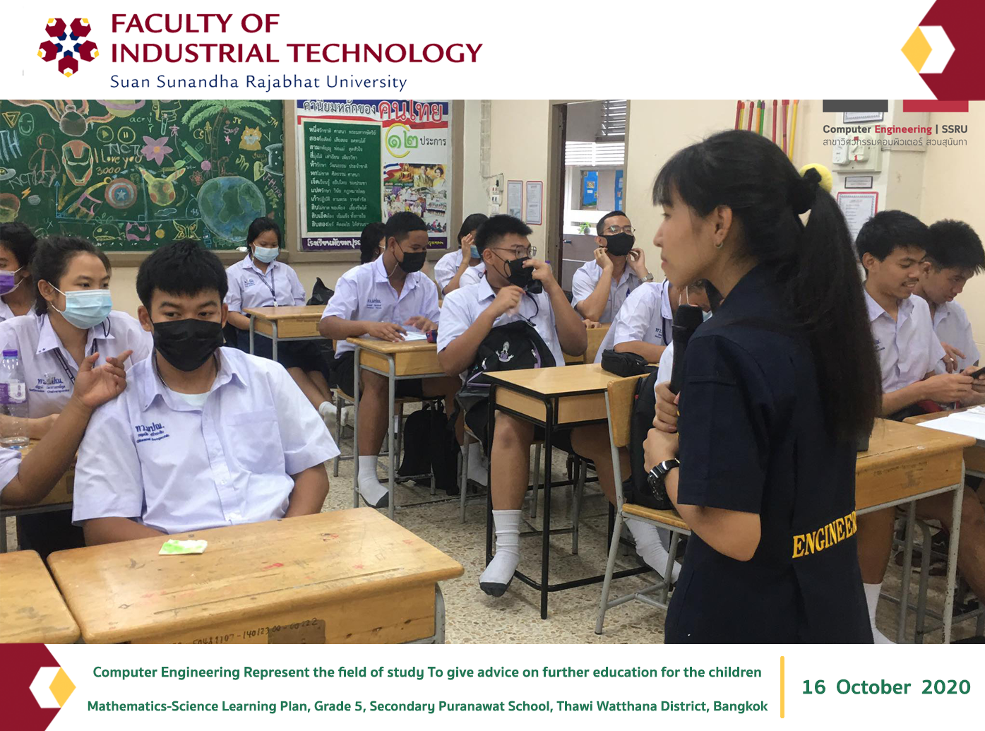 Friday, October 16, 2020 Ms. Yanisa Muangsee, 3rd year student in Computer Engineering Represent the field of study To give advice on further education for the children Mathematics-Science Learning Plan, Grade 5, Secondary Puranawat School, Thawi Watthana District, Bangkok