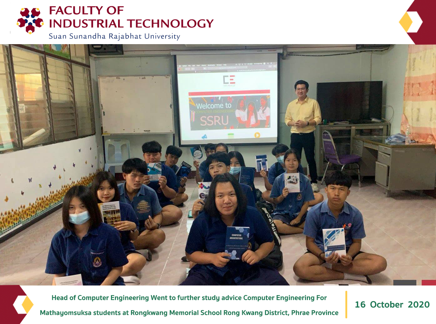 On October 16, 2020 Head of Computer Engineering Went to further study advice Computer Engineering Faculty of Industrial Technology Suan Sunandha Rajabhat University For Mathayomsuksa students at Rongkwang Memorial School Rong Kwang District, Phrae Province