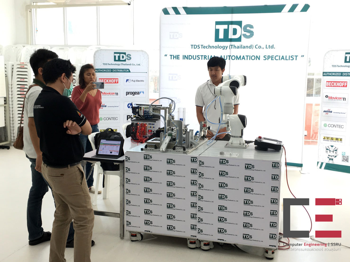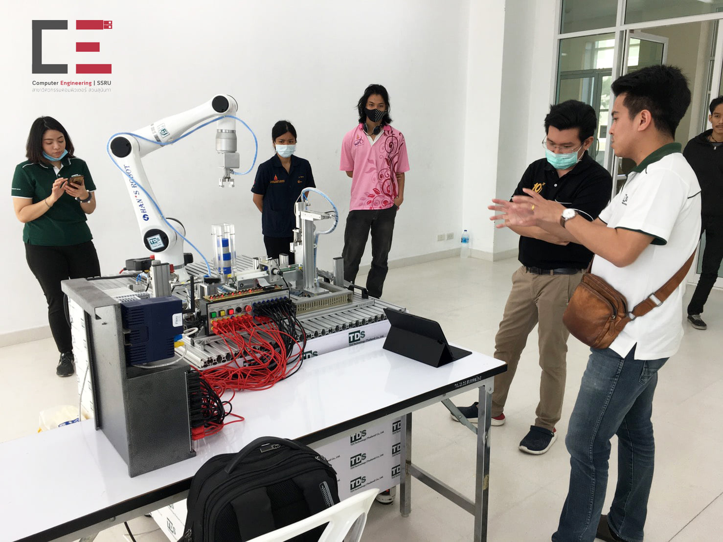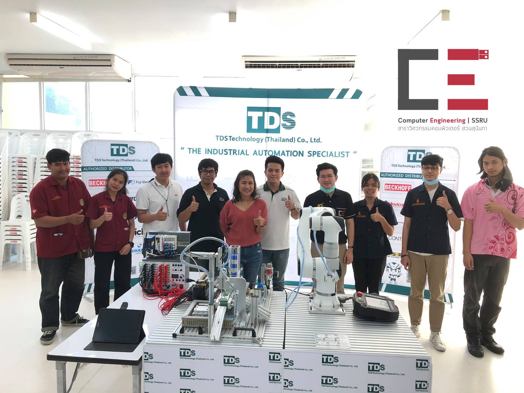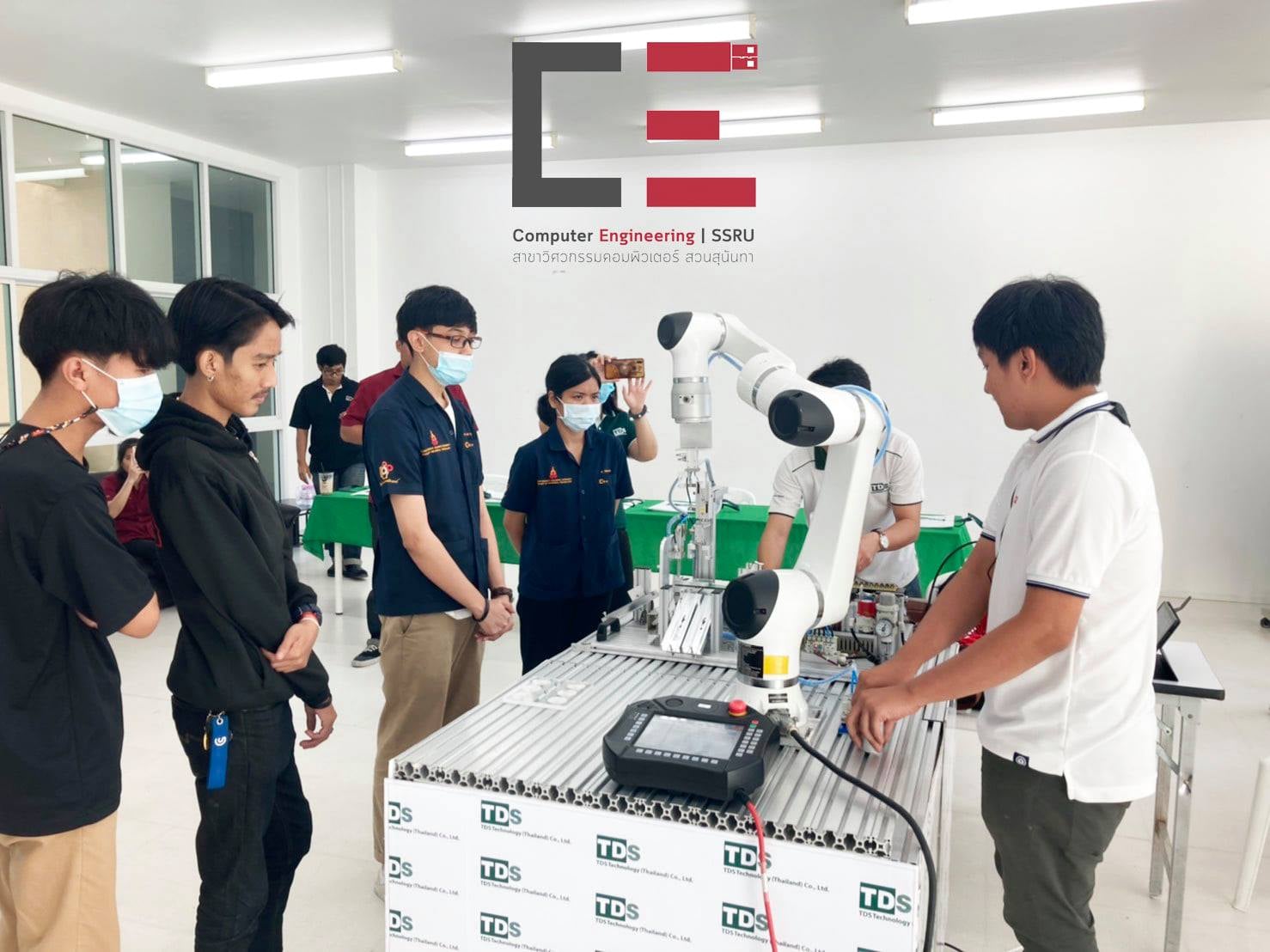 On November 20, 2020, Computer Engineering in collaboration with TDS Technology has organized a Robot Camp such as the installation of a mechanical arm. Data transmission via IoT system and industrial belt system management, etc., which will be displayed in the basic skills training project for youth, Robot Camp and Design Camp on 23-25 November 2020 at the building. 47 Faculty of Industrial Technology Suan Sunandha Rajabhat University