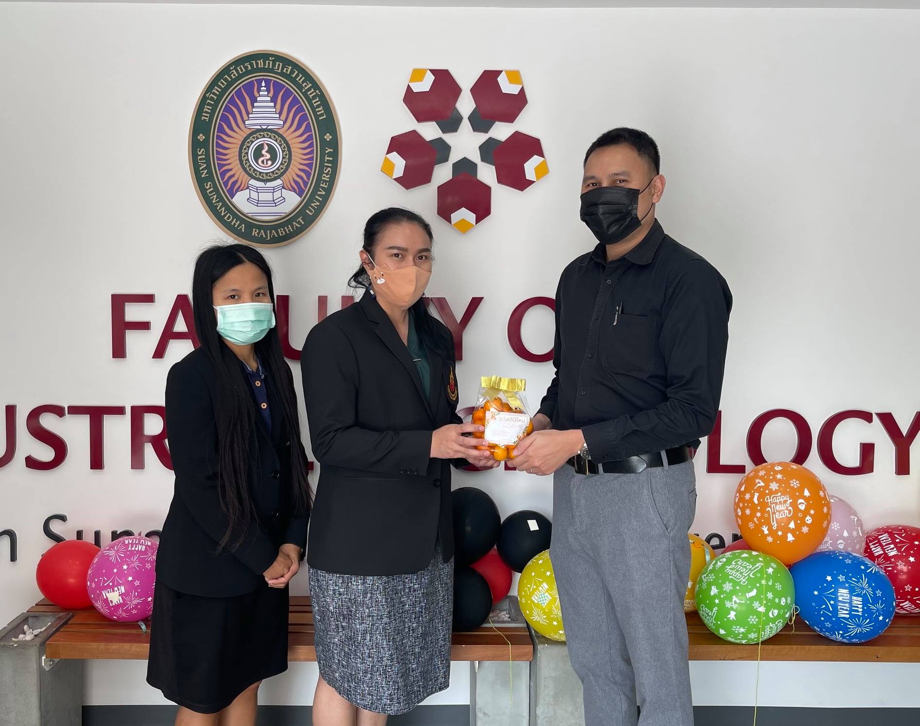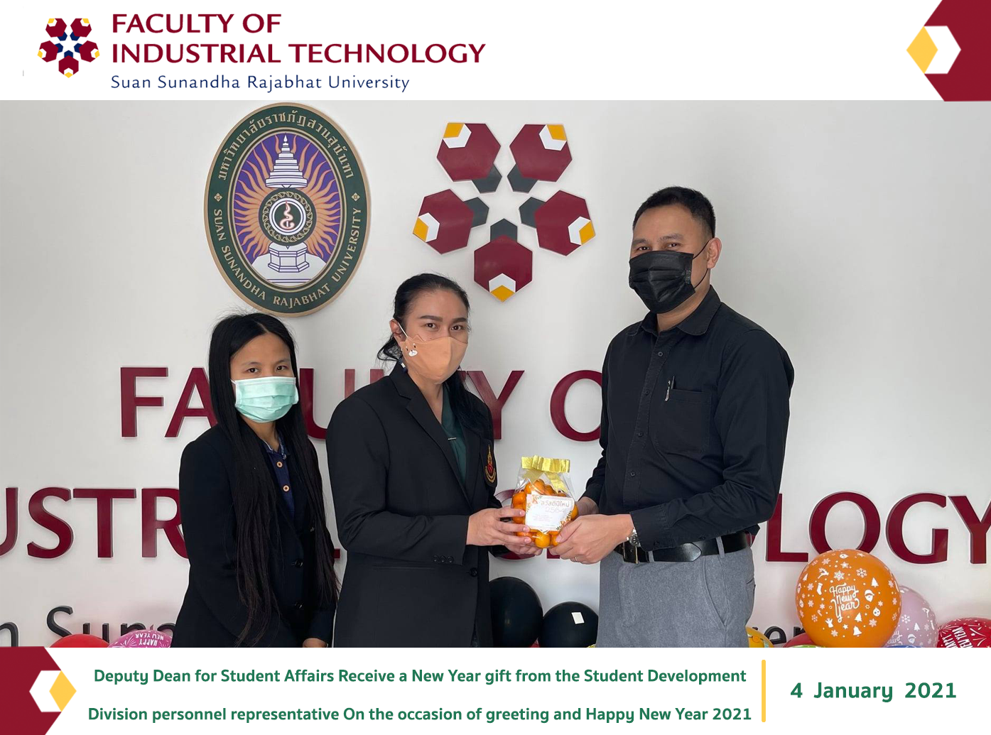 Deputy Dean for Student Affairs Receive a New Year gift from the Student Development Division personnel representative On the occasion of greeting and Happy New Year 2021 at the Office of the Dean, Faculty of Industrial Technology