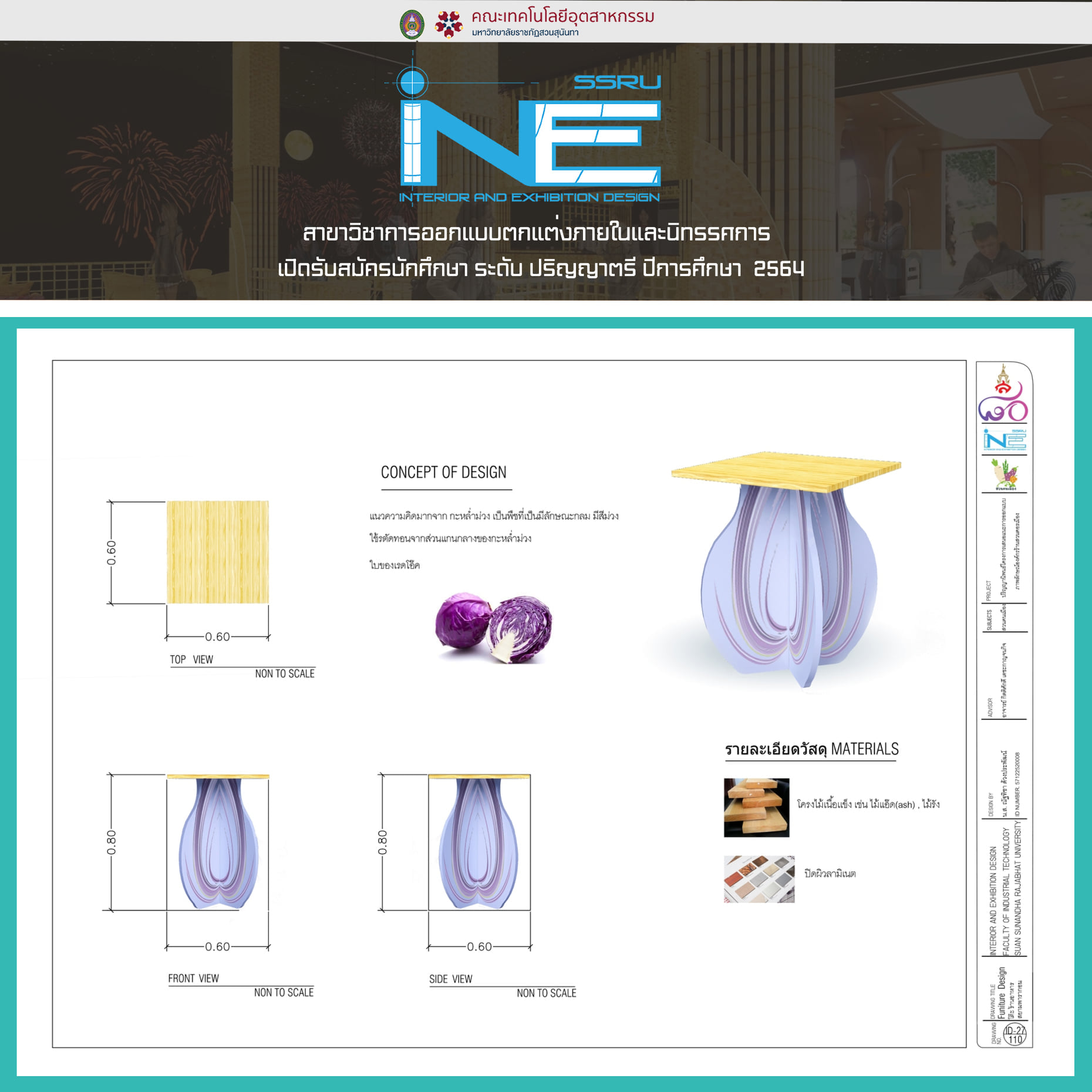 Besides learning Practice in interior design and exhibition work. Furniture work, drawing work and creating ideas from surrounding things to design ideas. Interior design and exhibition We are creatively concentrated. Come join and create new ideas together.