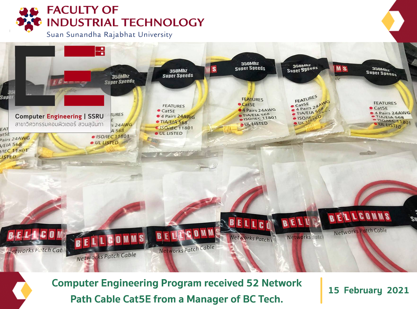 February 5, 2021 Computer Engineering was awarded Network Path Cable Cat5E from Manager of BC Tech, 52 lines to be used as teaching materials in related courses. In Computer Engineering, we highly appreciate this opportunity.
