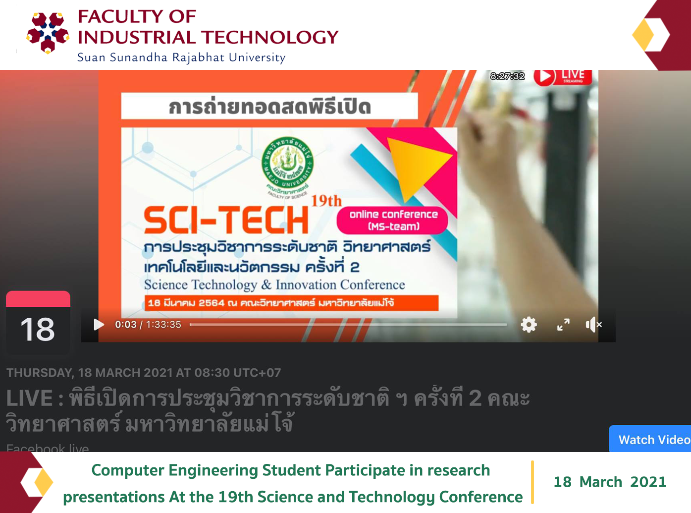 Thursday March 18, 2021 Computer Engineering students Participate in research presentations At the National Conference on Science and Technology and Innovation (Mae Jo University) 2nd (19th Science and Technology Conference) Faculty of Science Mae Jo University In an online format via Microsoft Teams application, the groups are presented as follows.