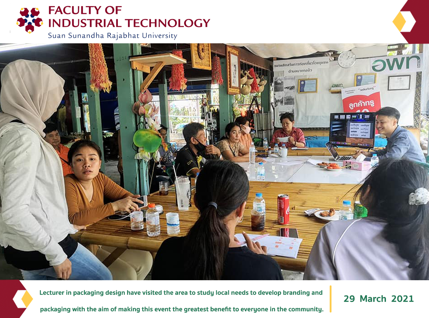 Knowledge transfer to the local area to strengthen the community It is another important role that the professors in the field always have the intention and hope to benefit the community. Lecturer in packaging design have visited the area to study local needs to develop branding and packaging with the aim of making this event the greatest benefit to everyone in the community.