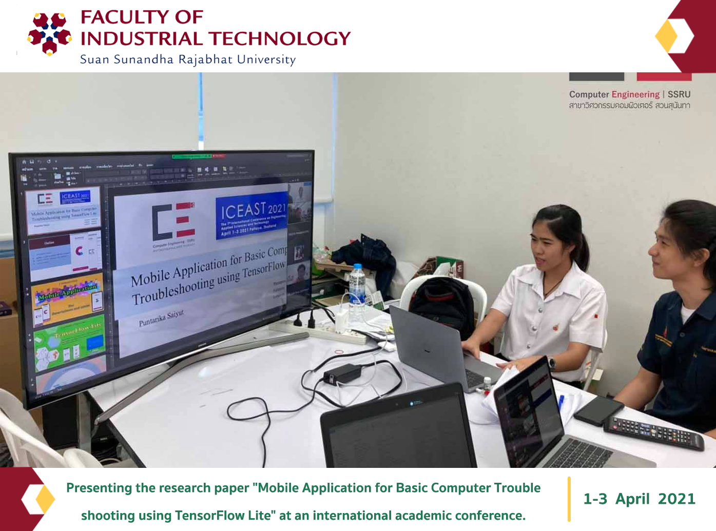 1-3 April 2021, the research paper entitled "Mobile Application for Basic Computer Troubleshooting using TensorFlow Lite" was presented at the International Conference on Engineering, Applied Sciences and Technology (ICEAST) in an online format via ZOOM. Dr. Setthakan Prongnut is a consultant.