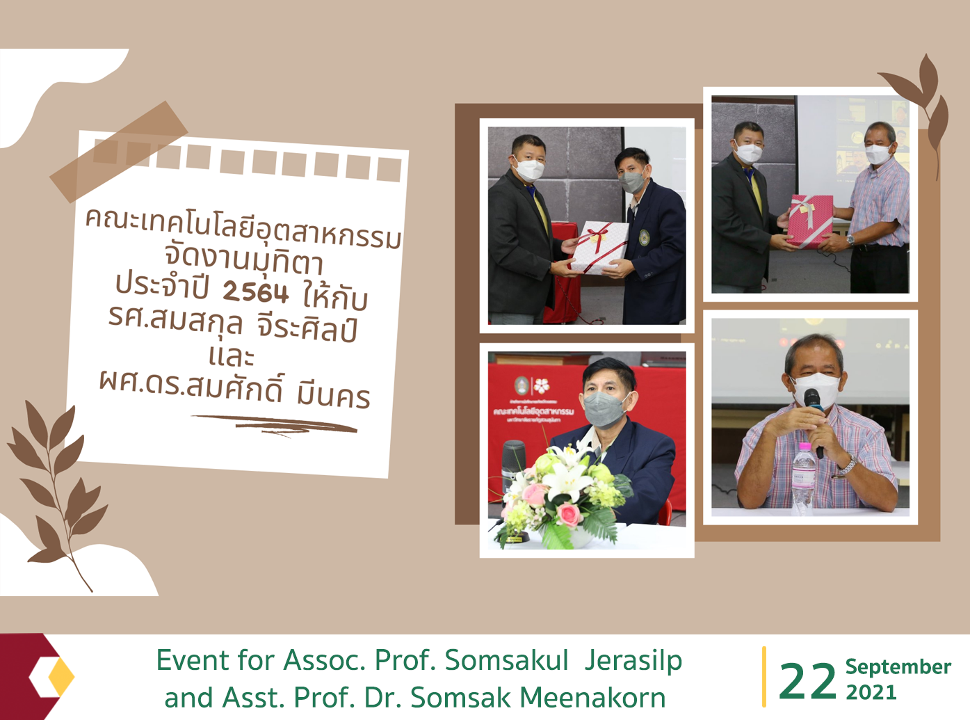 Date 22 Sep 2021 Faculty of Industrial Technology Organized the event for Assoc. Prof. Somsakul Jerasilp and Asst. Prof. Dr. Somsak Meenakorn in an online format via Google Meet with Asst. Prof. Dr.Suraphan Ratanavadi Dean of the Faculty of Industrial Technology and Asst. Prof. Dr.Palang Wongtanasuporn presented a souvenir