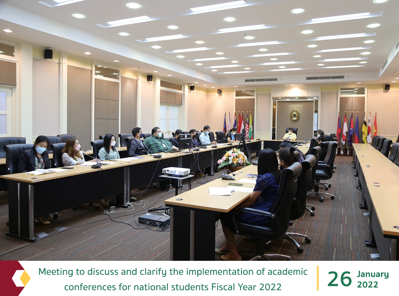 On January 26, 2022, Dean of the Faculty of Industrial Technology The chairman of the meeting and support staff discussed and explain the implementation of academic conferences for national students Fiscal Year 2022 at Phisamai Phimonsat Conference Room, Building 43, Faculty of Industrial Technology Suan Sunandha Rajabhat University