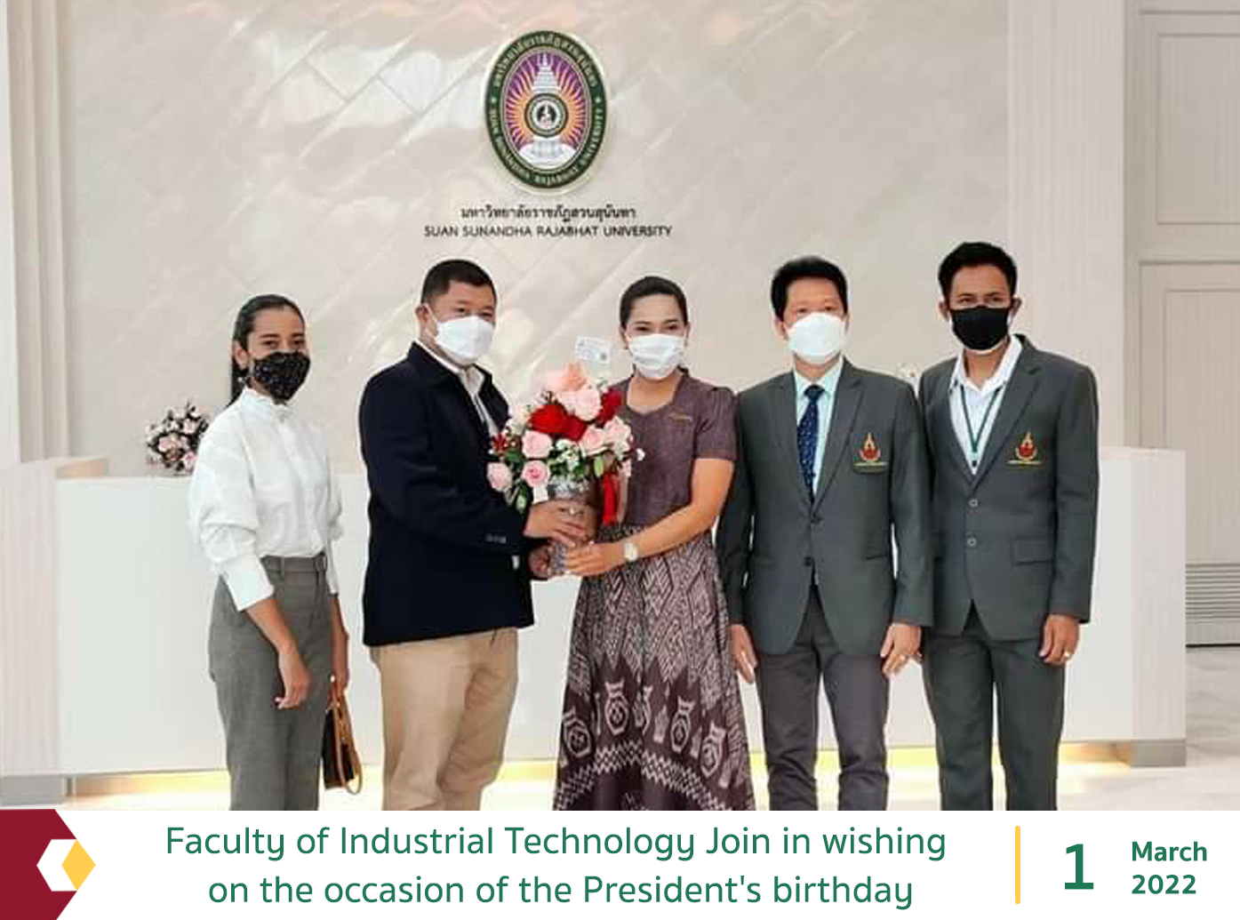 On March 1, 2022, the Faculty of Industrial Technology, led by Dean, together with faculty members Join to wish the President on the occasion of the President's birthday at the reception room of the President's Office, Building 31, 1st floor, Suan Sunandha Rajabhat University.