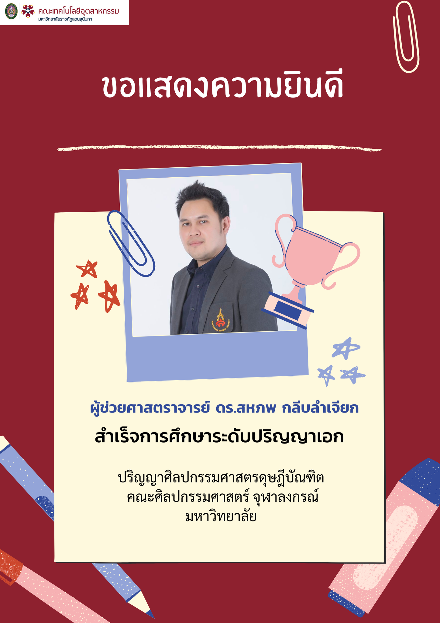 Faculty of Industrial Technology congratulations to Lecturer in Product and Packaging Design Department on the occasion of graduating with a doctorate degree Doctor of Fine Arts degree Faculty of Fine and Applied Arts Chulalongkorn University